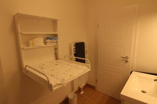 Das Badezimmer verfügt über eine Badewanne und einen Wickeltisch zum Ausklappen.