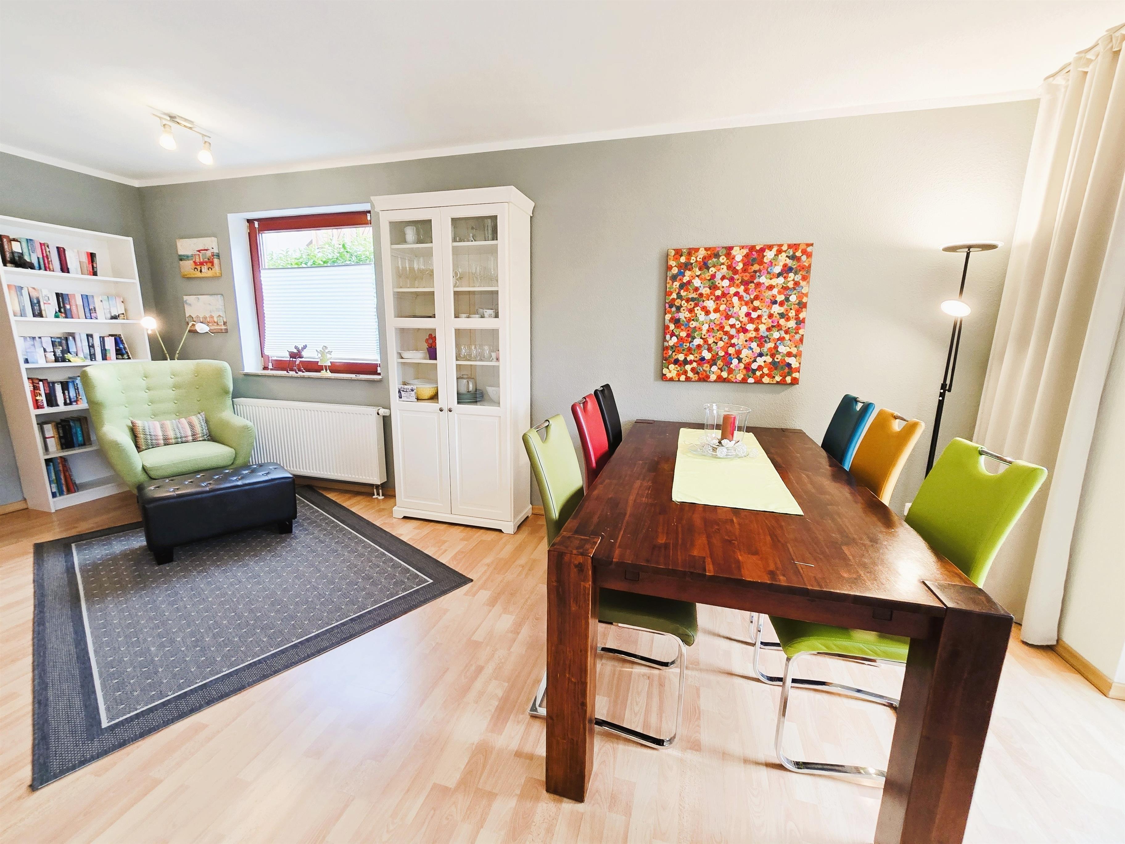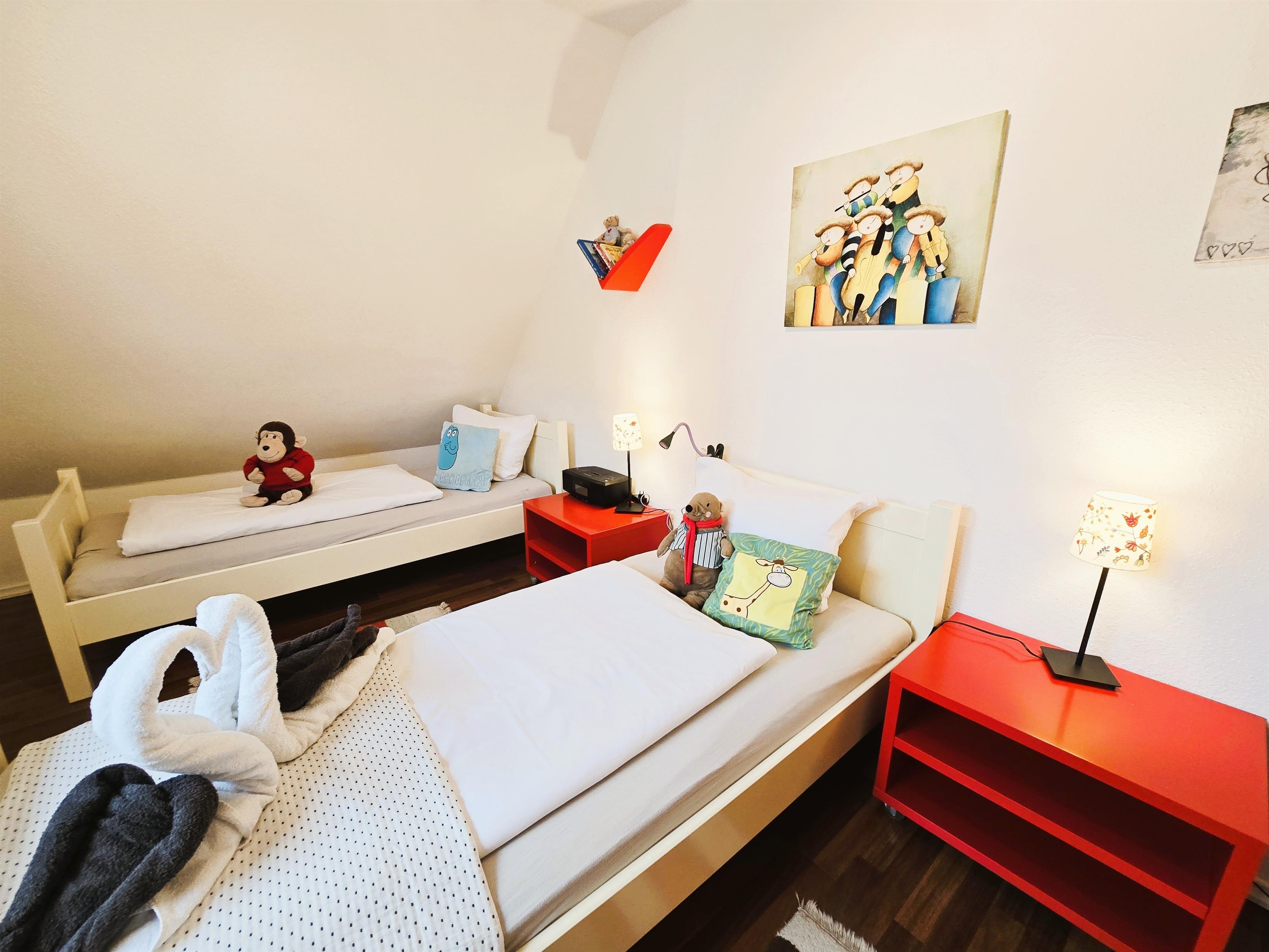 Die Einrichtung ist liebevoll und farbenfroh gestaltet, mit vielen kleinen Details, die eine warme und persönliche Atmosphäre schaffen.