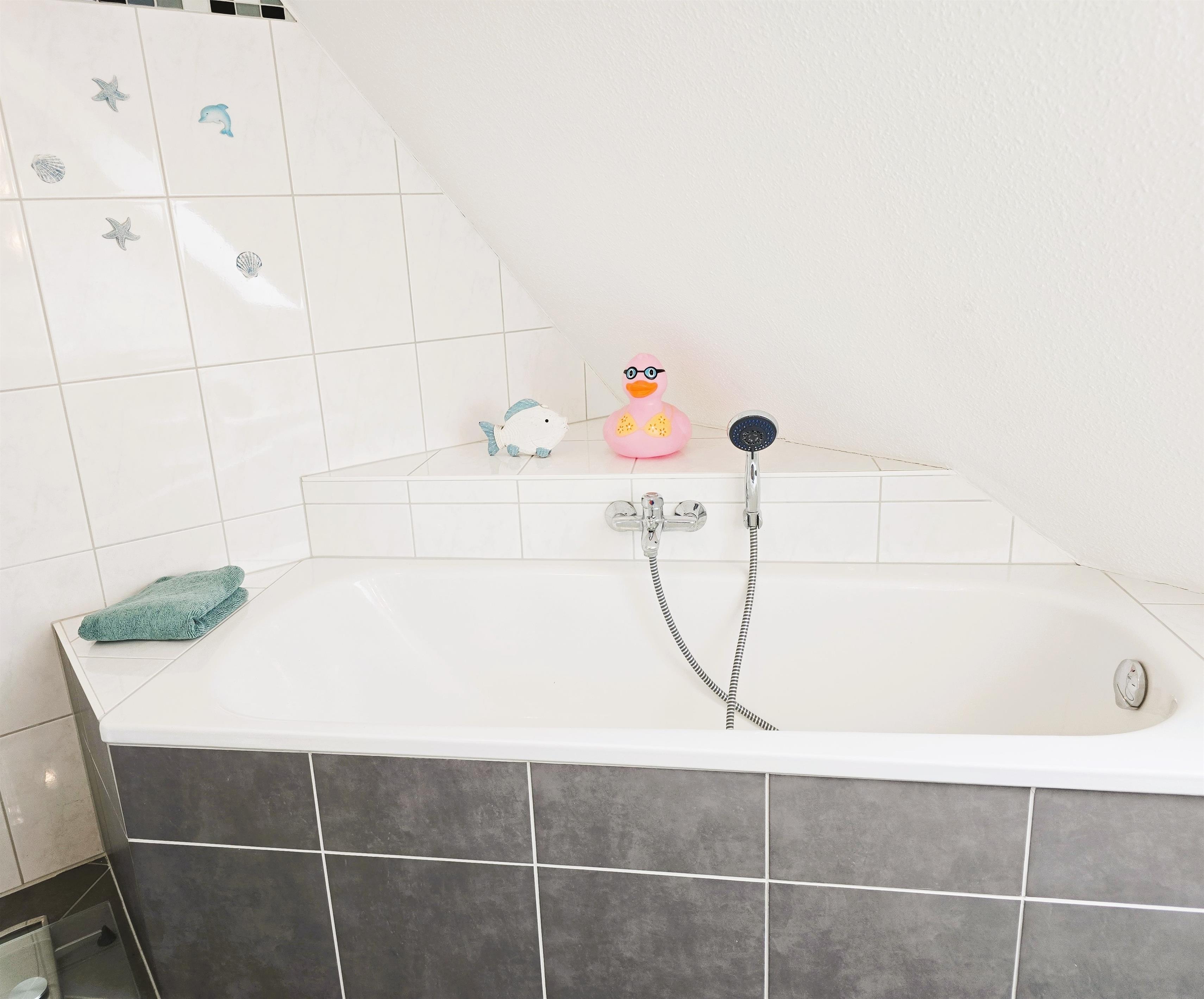 Im Badezimmer stehen sowohl Dusche als auch eine Badewanne zur Verfügung.