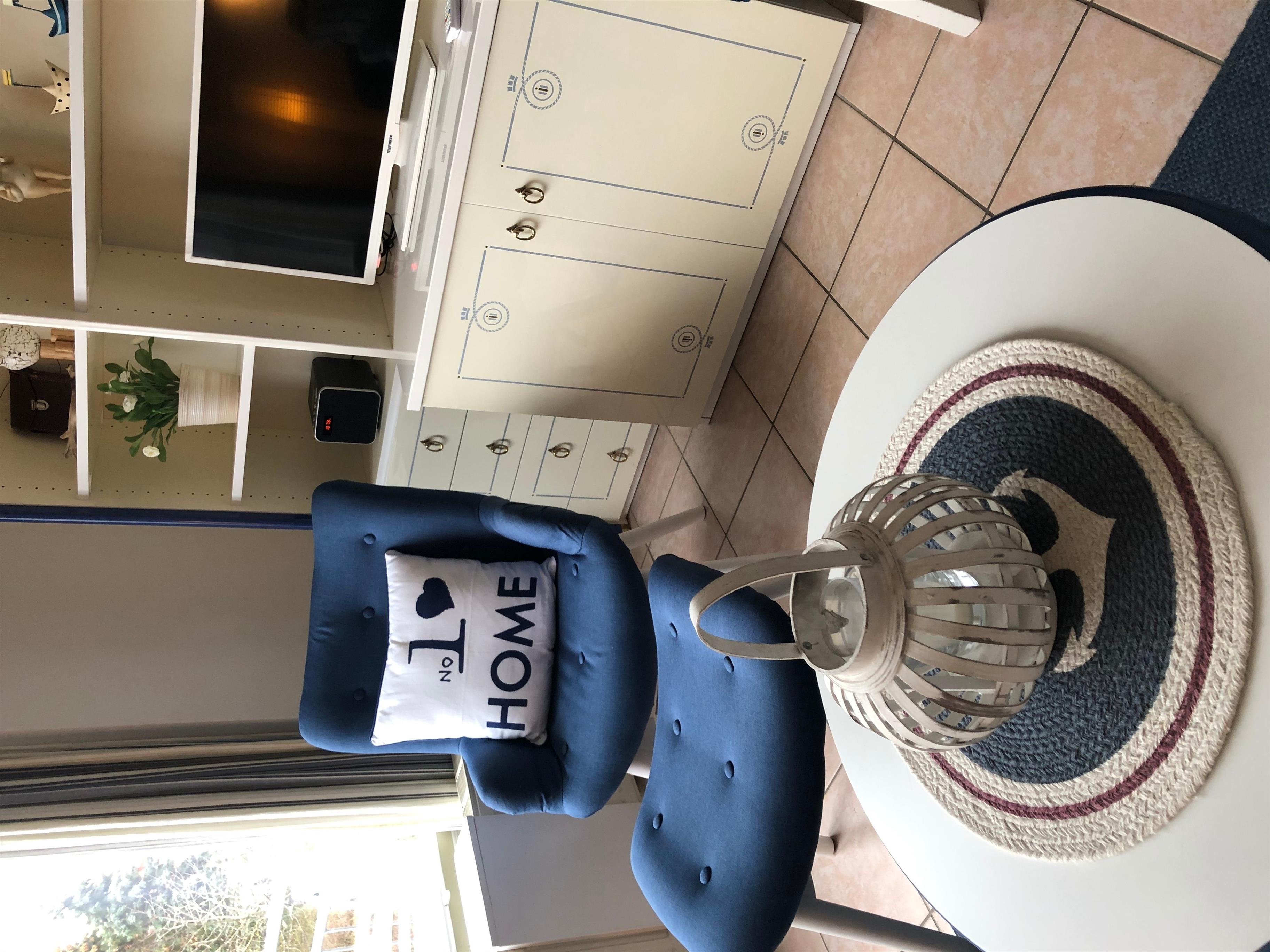 Die Ferienwohnung Meeresblick liegt in der 2. Etage, ist 27m2 groß. Aus der Wohnung und vom Balkon hat man einen traumhaften Blick auf das Salzhaff und die Ostsee. Der Balkon ist mit Holzmöbeln und Sonnenschirm ausgestattet. Die Wohnung verfügt über ein Wohn-/Schlafzimmer mit einem Faltbettschlafsofa für zwei Personen. Das Faltbettschlafsofa besitzt eine komfortable federgelagerte Kaltschaummatratze mit einer Liegefläche von 1,7 x 2,0 m. Die Küchenzeile ist mit einem Glaskeramikkochfeld, Kühlschrank mit Gefrierfach, Mikrowelle, separatem Backofen, Kaffeemaschine, Wasserkocher, Toaster, Eierkocher, Mixer und liebevoll ausgesuchtem Geschirr ausgestattet. Die Wohnung verfügt weiterhin über einen Flachbildfernseher mit integriertem DVD/CD Player sowie einem Radio mit BlueTooth Funktion und USB Anschluss zum Laden von I Phone, I Pad, I Pod, Leselampe für den Bücherfan, ein ganzes Schrankfach mit Büchern (Taschenbücher und Sachbücher über die Ostsee im Reriker Raum), einen großen Kleiderschrank im Flur sowie ein Badezimmer mit Dusche, WC und Fön. Vor der Balkontür befindet sich eine Fliegenschutzschiebetür. Unseren Gästen steht kostenlos Internet per WLAN zur Verfügung. Ihre mitgebrachten Fahrräder können Sie im Fahrradkeller abstellen. Für Ihren PKW steht Ihnen ein abschließbarer Parkplatz direkt vor dem Haus zur Verfügung