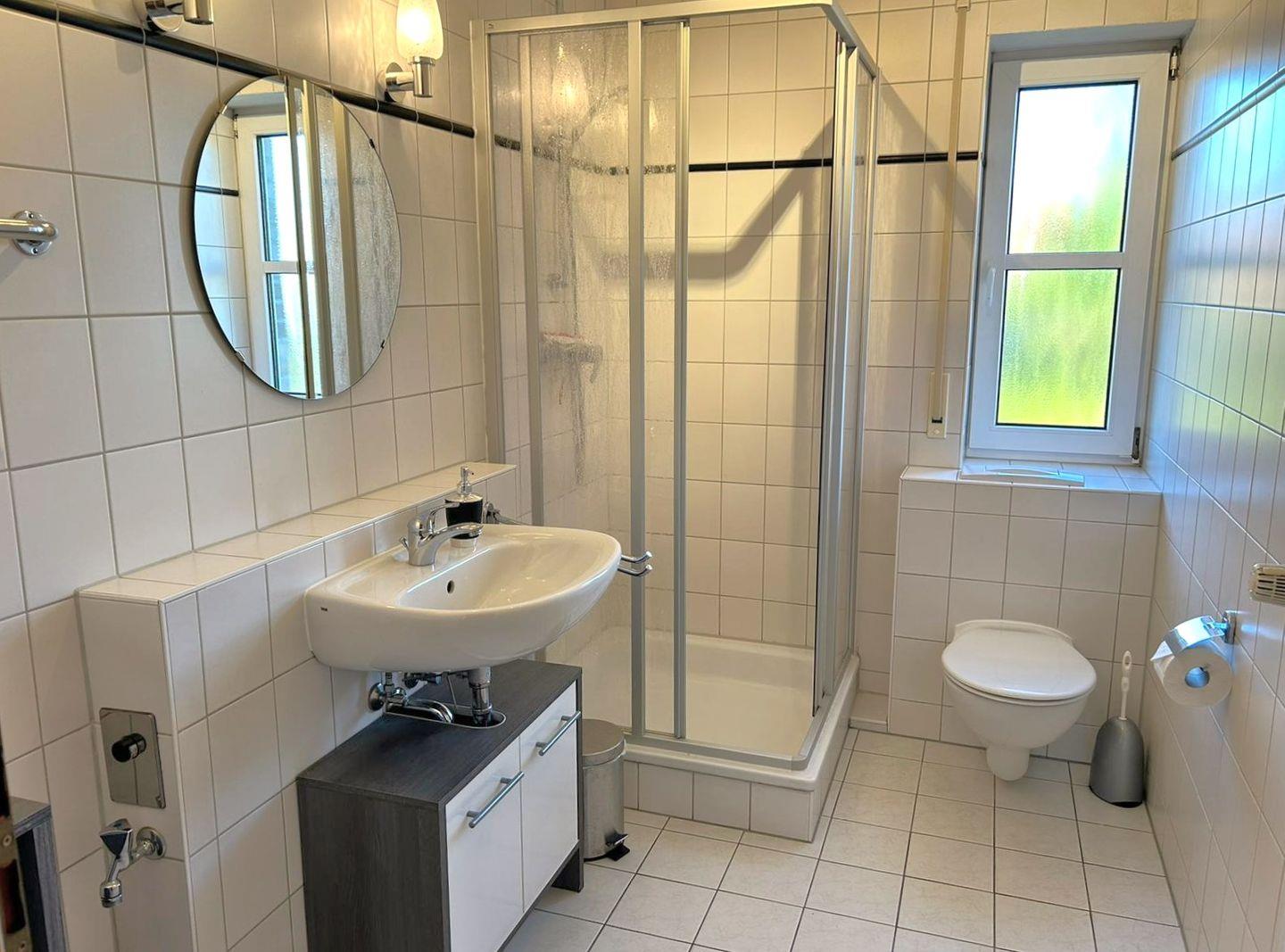 Das Duschbad hat ein Fenster. Alle Fenster sind mit Aussenrolläden ausgestattet.
