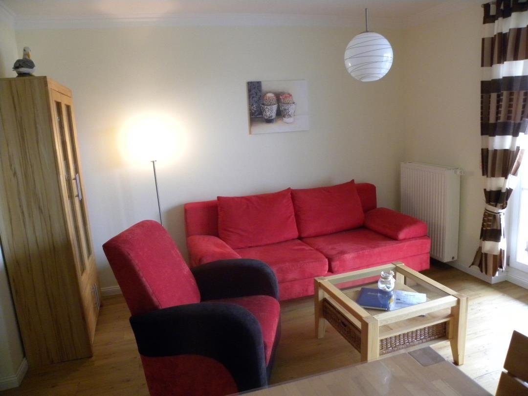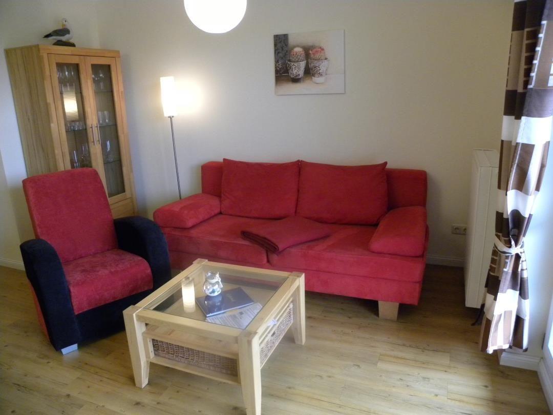 Im Wohnzimmer befindet sich eine bequeme Sitzecke zum Entspannen und Fernsehen sowie ein Esstisch mit 4 Stühlen. Das Sofa bietet eine weitere Schlafmöglichkeit für 2 Personen. Über den Flur gelangt man in das moderne Bad mit Dusche und WC. Die komfortable und voll ausgestattete Küche verfügt über alles, was Feriengäste für die Selbstverpflegung benötigen (Geschirrspüler, 4 Platten-Ceranfeld, Backofen, Mikrowelle, Kühlschrank mit Gefrierfach, Kaffeemaschine etc.). Das ruhig gelegene Schlafzimmer bietet ein Doppelbett und einen geräumigen Kleiderschrank.
