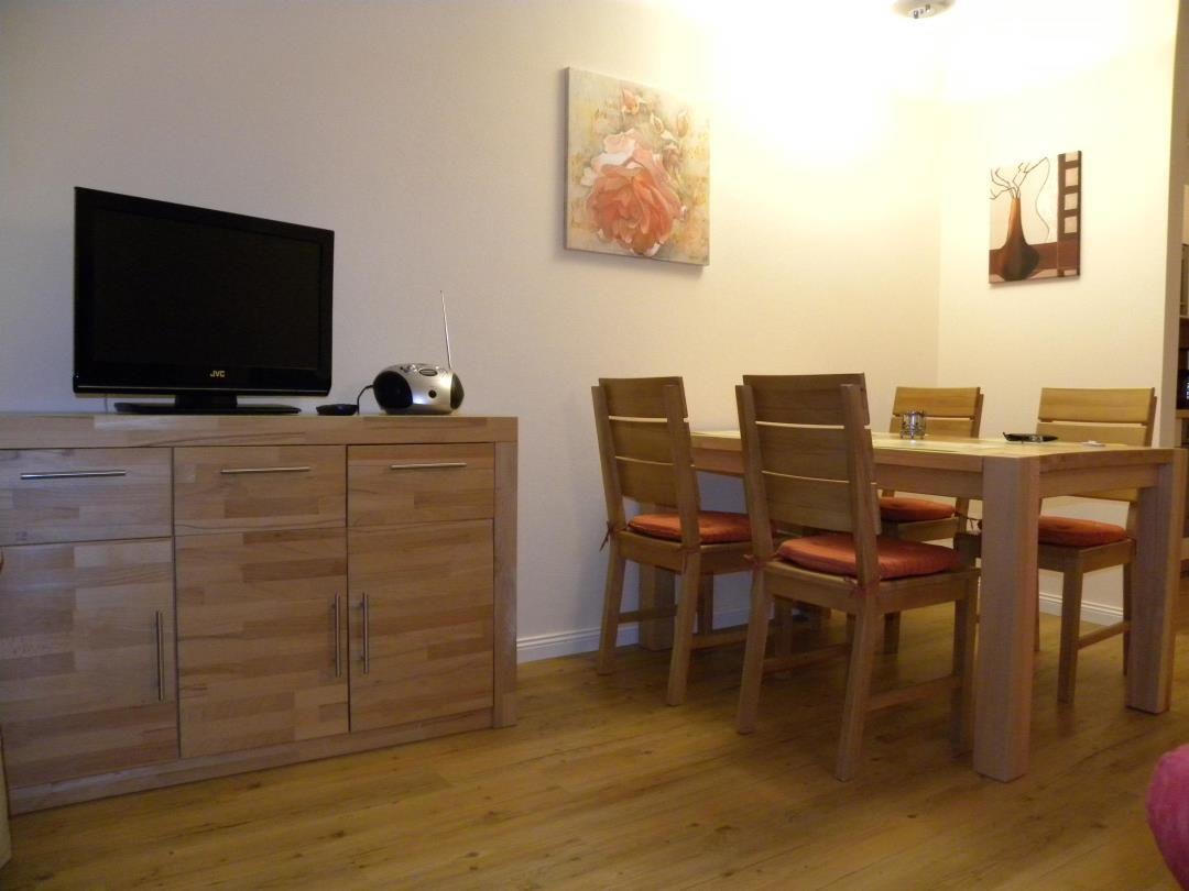 Die Ferienwohnung ist sehr geschmackvoll und modern eingerichtet. Sie ist mit einem pflegeleichten Fußbodenbelag in Echtholzoptik ausgestattet und ideal für Familien mit Kindern.