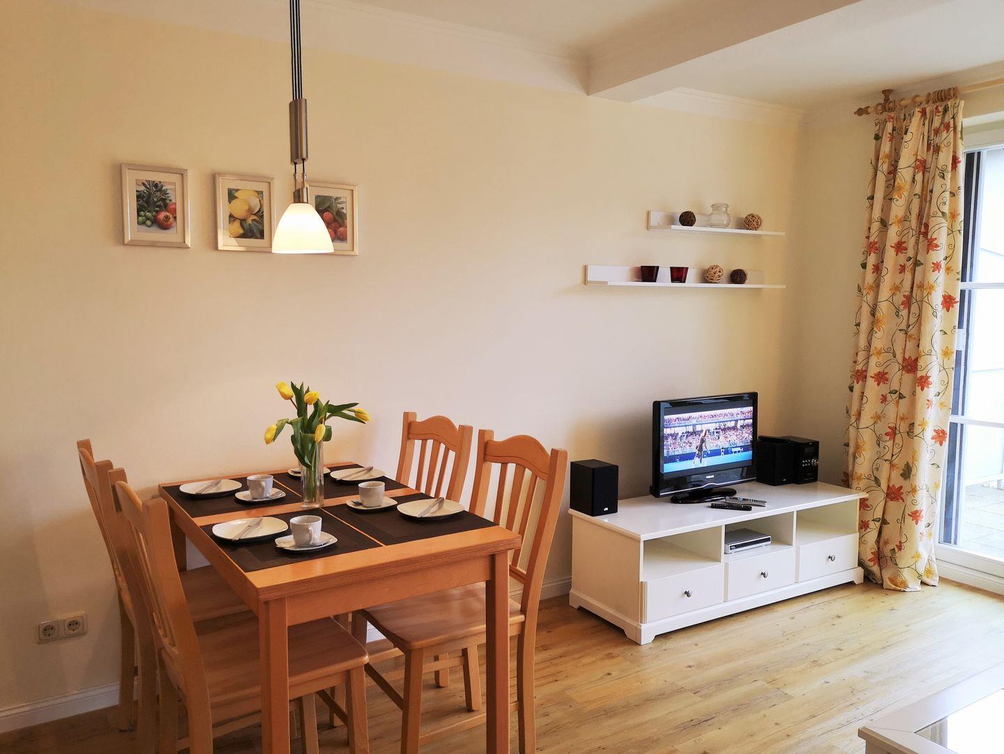 Zu Ihrer Unterhaltung stehen Ihnen in der Ferienwohnung ein modernes Flachbild-TV-Gerät sowie ein MP3-CD-Radio zur Verfügung. Darüber hinaus verfügt die Wohnung über kostenfreies WLAN. Eine kleine Bücherauswahl steht Ihnen als Urlaubslektüre ebenfalls zur Verfügung.