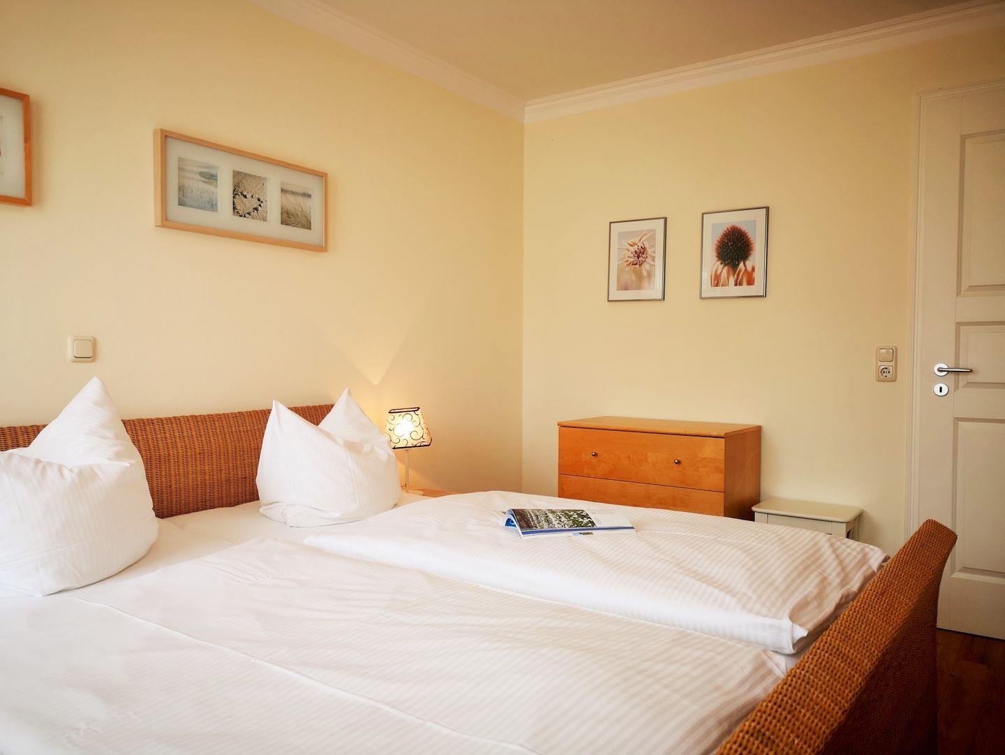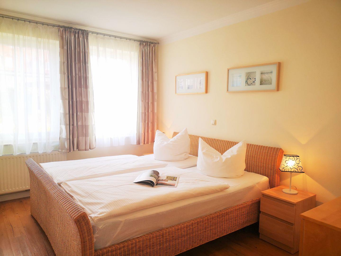 Das freundliche und sehr gemütliche Schlafzimmer ist mit einem bequemen Doppelbett, Nachttischen sowie einem geräumigen Kleiderschrank eingerichtet.