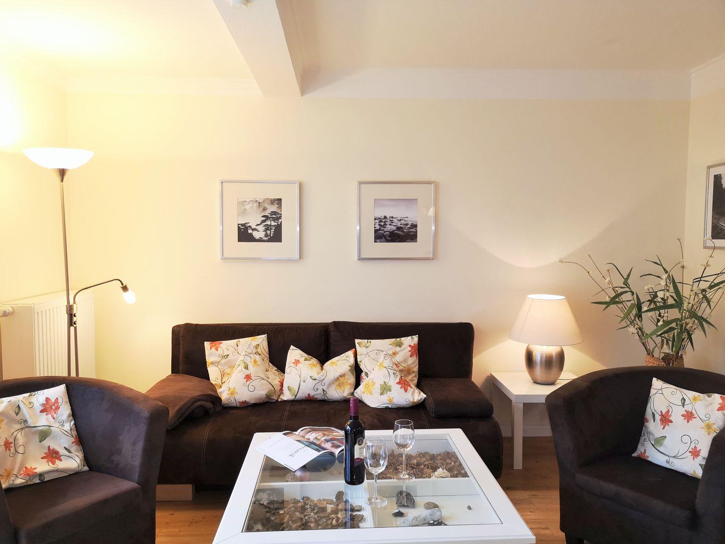 Eine zusätzliche bequeme Schlafmöglichkeit für eine 3. bzw. 4. Person bietet die ausziehbare Schlafcouch im Wohnzimmer.