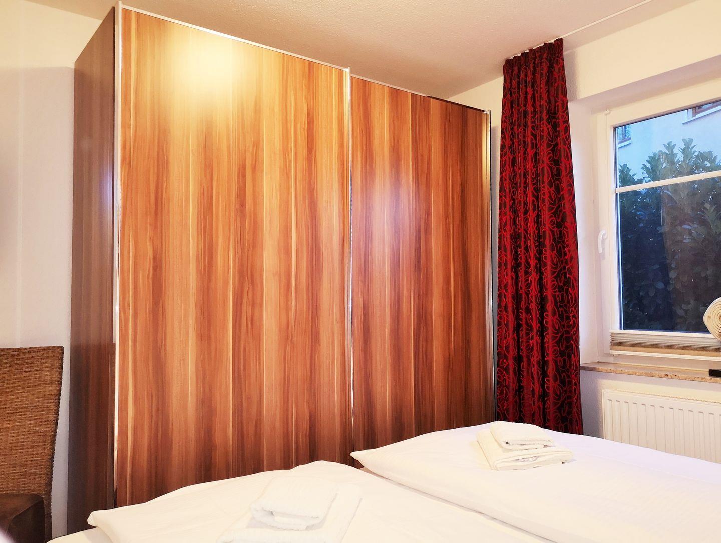 Das separate 2. Schlafzimmer verfügt über 2 getrennte Einzelbetten, einen Nachttisch sowie 2 Kommoden. Auch in diesem Zimmer steht Ihnen ein TV-Gerät zur Verfügung.