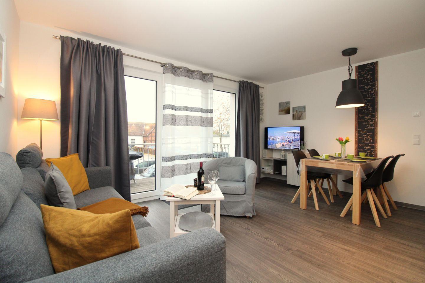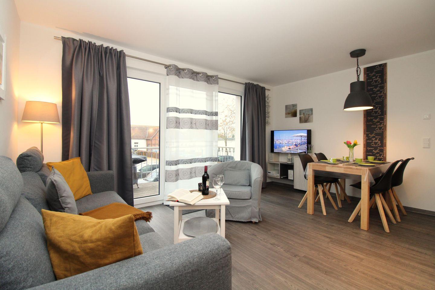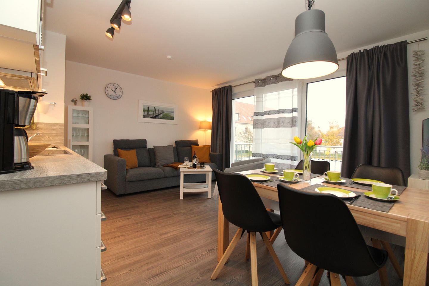 Moderne 3-Zimmer-Ferienwohnung mit Balkon, WLAN und Parkplatz in Rerik, nur 250 m vom Strand entfernt.