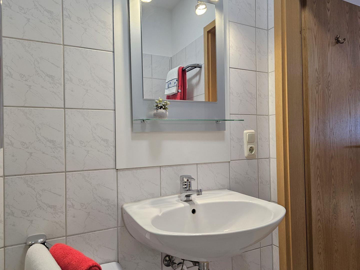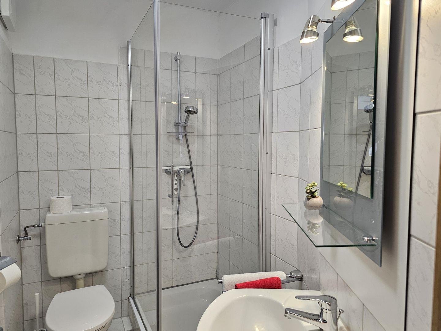 Die Wohnung verfügt über ein modernes Bad mit Dusche und WC. In der vollausgestatteten Küche können Sie Ihre Lieblingsgerichte zubereiten und gemeinsam am großen Esstisch speisen – ideal für gesellige Abende oder spannende Gesellschaftsspiele mit der ganzen Familie.