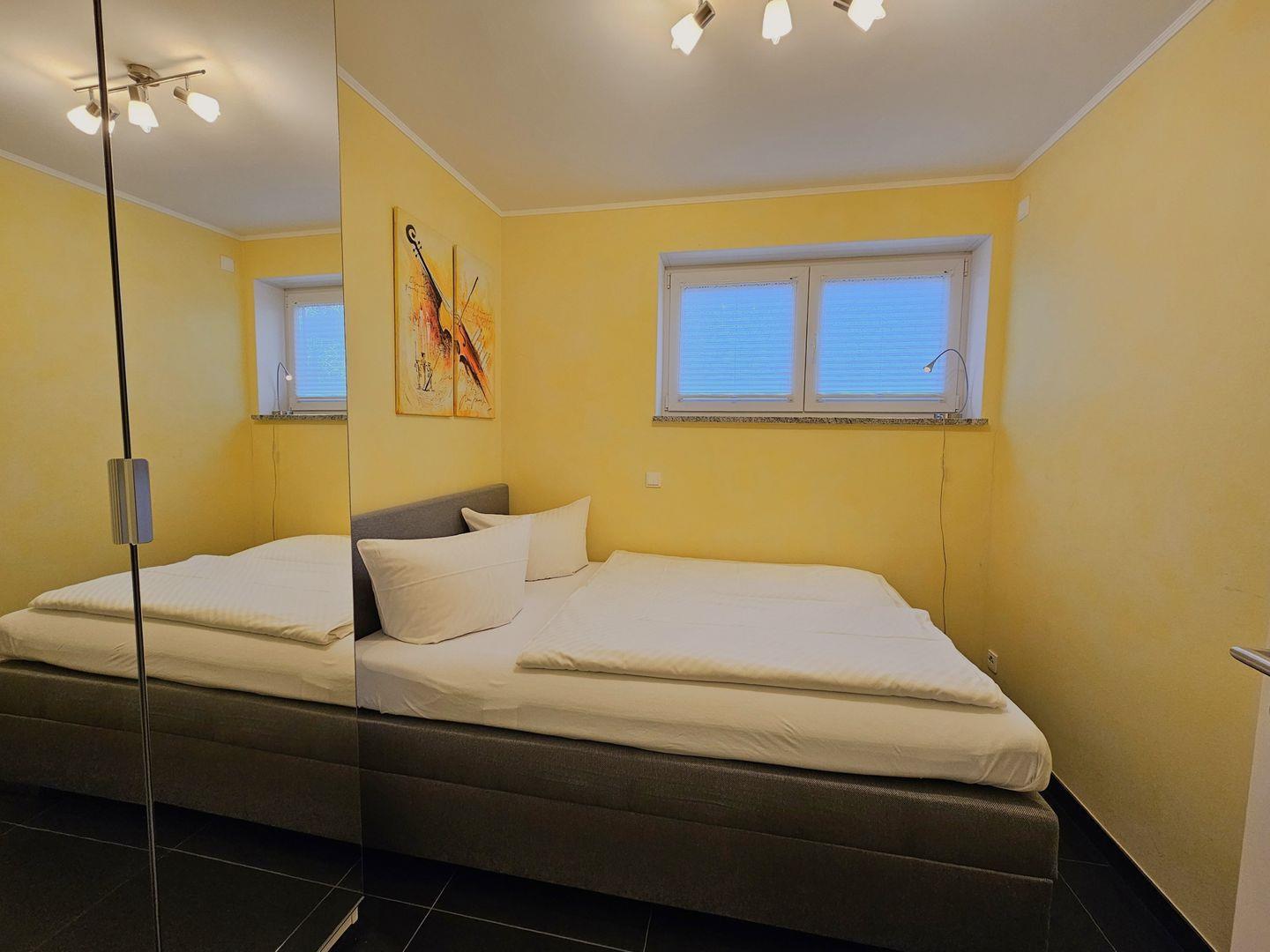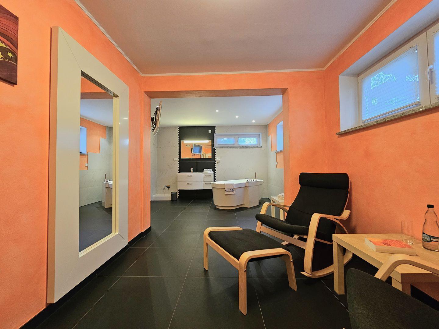 Das Haus verfügt über drei separate Schlafzimmer im Untergeschoss, die Ihnen Ruhe und Rückzugsmöglichkeiten bieten. Hier können Sie nach einem erlebnisreichen Tag entspannen und neue Energie tanken. Besonders hervorzuheben ist der exklusive Wellness-Bereich: Gönnen Sie sich entspannende Stunden in der Sauna oder genießen Sie ein wohltuendes Bad in der freistehenden Badewanne – alles mit Blick auf einen Flachbild-TV!