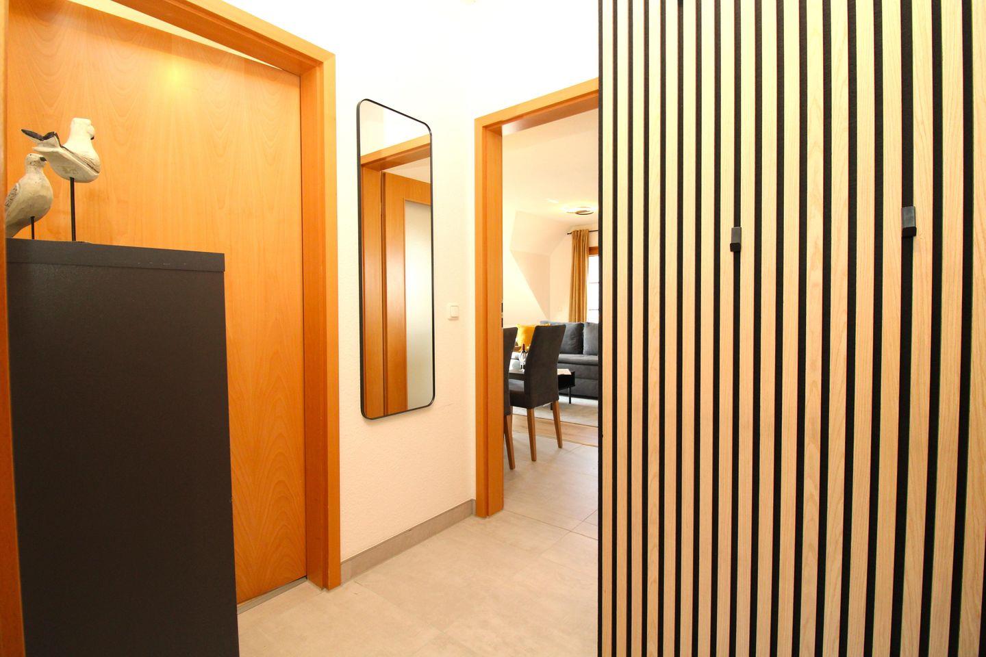 Vom geräumigen Flur mit Garderobe, Spiegel und Schuhschrank erreichen Sie bequem alle Räume Ihrer Ferienwohnung.