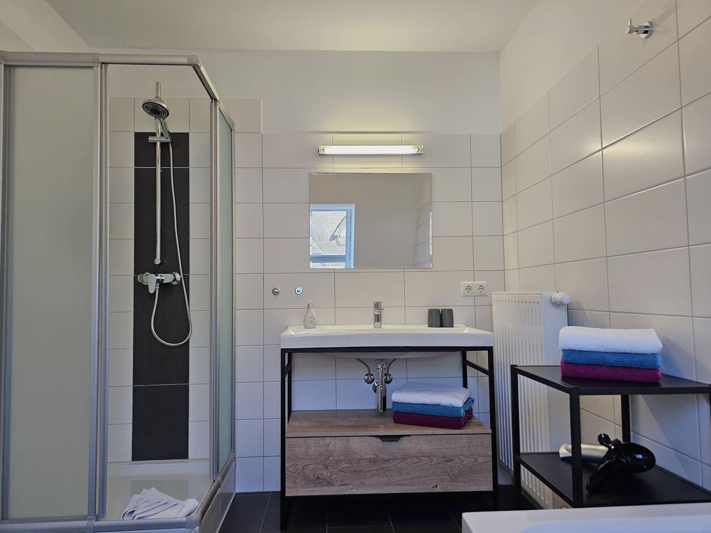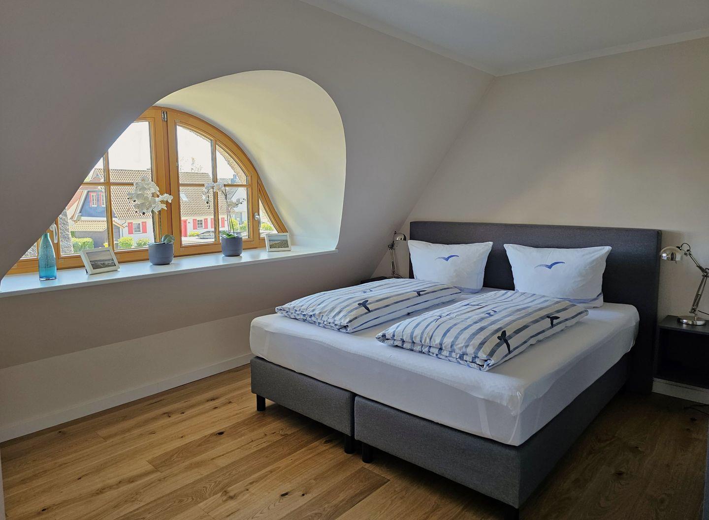 Das Ferienhaus verfügt über insgesamt vier Zimmer, darunter drei komfortabel ausgestattete Schlafzimmer, die Platz für erholsame Nächte bieten. Für zusätzliche Bequemlichkeit gibt es ein Badezimmer mit Dusche, Badewanne und Waschbecken sowie ein separates Gäste-WC. Die hellen und freundlichen Räume sind mit modernen Möbeln ausgestattet und sorgen für eine einladende Atmosphäre. Das Wohnzimmer, das offen zur voll ausgestatteten Küche gestaltet ist, lädt zu geselligen Abenden ein. Hier finden Sie eine gemütliche Sofaecke, einen Esstisch und die technische Ausstattung wie Fernseher und WLAN. Die Küche lässt mit modernen Elektrogeräten wie Spülmaschine, Backofen, Mikrowelle, Herd und Kühlschrank keine Wünsche offen. Auch Küchenutensilien sind in ausreichender Menge vorhanden, sodass Sie der Zubereitung Ihrer Lieblingsgerichte nichts im Wege steht.