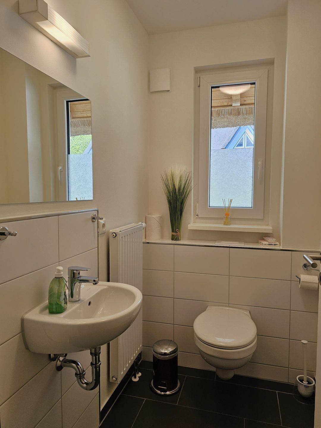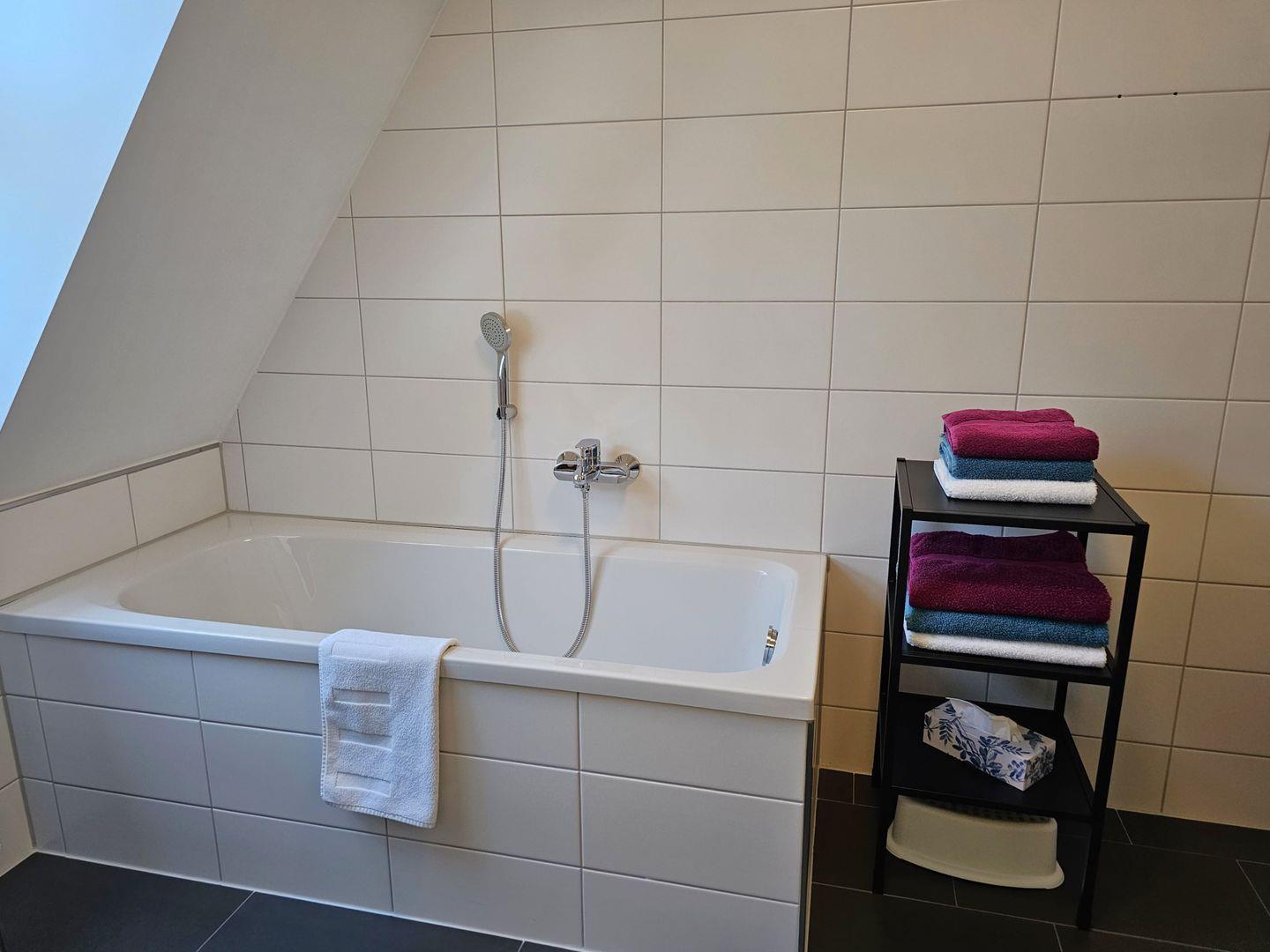 Das Badezimmer in der 1. Etage ist sowohl mit einer Dusche als auch einer Badewanne ausgestattet, sodass Sie sich nach einem langen Tag am Strand wunderbar relaxen können. Zusätzlich gibt es ein Gäste-WC, um den Komfort zu erhöhen. Für Ihre Unterhaltung stehen Ihnen zwei Fernseher, sowie kostenloses WLAN zur Verfügung, sodass Sie auch in Ihrer Freizeit bestens vernetzt sind. Bettwäsche und Handtücher können gegen eine Gebühr hinzugebucht werden.