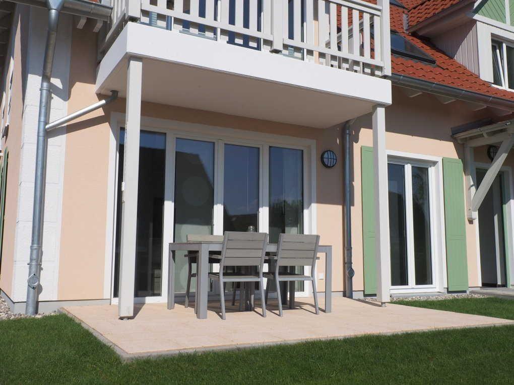 Gemütliche 3-Zimmer-Ferienwohnung im Erdgeschoss mit Terrasse und Gartenblick, ideal für ruhige und stilvolle Urlaubstage.