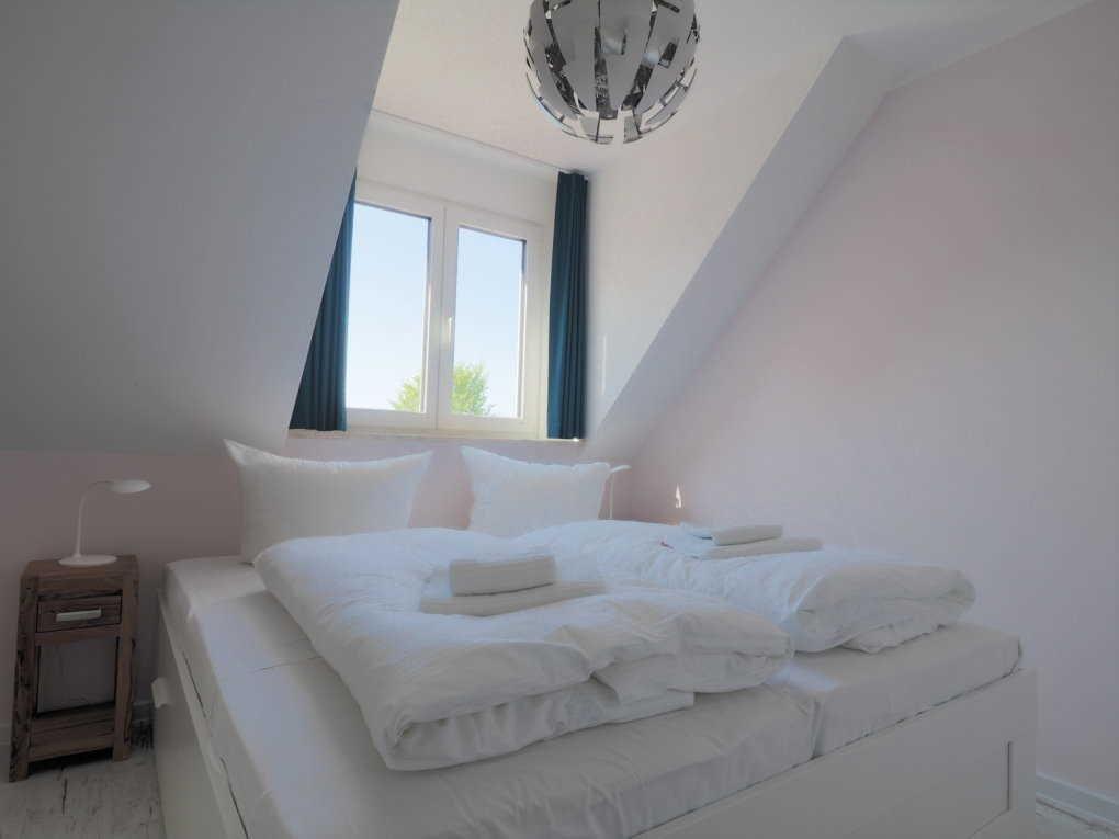 Die helle 2-Zimmer-Wohnung im Obergeschoss verfügt über ein Wohnzimmer mit Schlafsofa, offene Küche mit Sitzecke und TV sowie Zugang zum Balkon mit Gartenmöbeln. Das Schlafzimmer bietet ein Doppelbett, großen Kleiderschrank, TV und Ablagemöglichkeiten. Das moderne Duschbad ist mit Föhn und Kosmetikspiegel ausgestattet. Hund erlaubt.