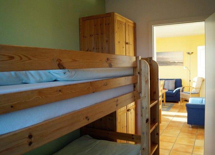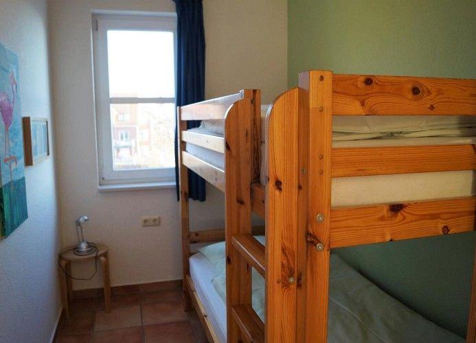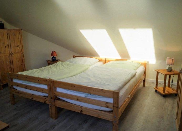 Die beiden Schlafzimmer auf der unteren Wohnebene verfügen über ein Doppelbett bzw. das zweite über ein Doppelstockbett. Im oberen Wohnbereich stehen zwei Einzelbetten sowie zusätzlich eine Doppelschlafcouch zur Verfügung.