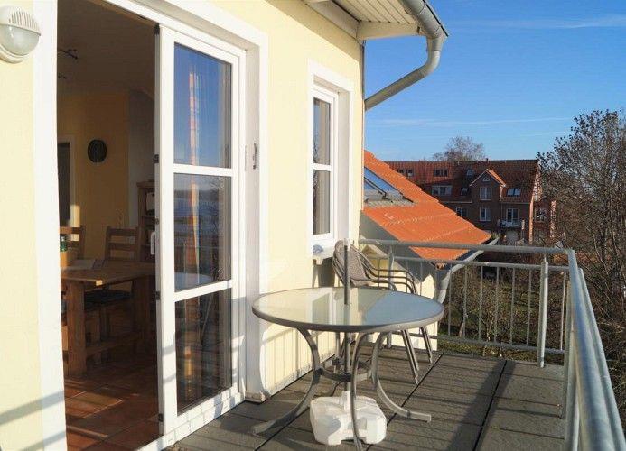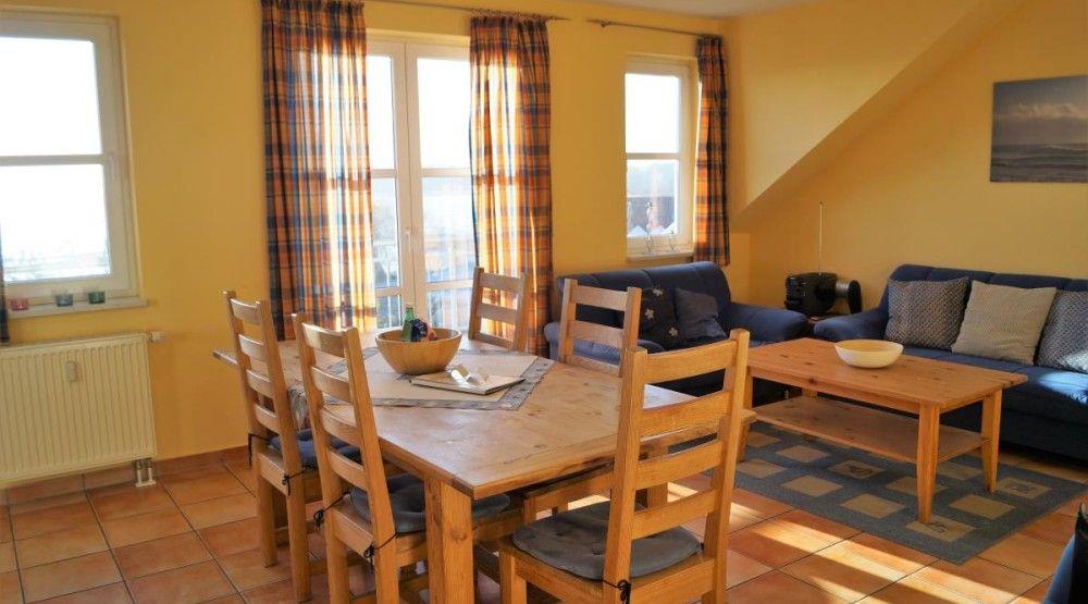 Genießen Sie einen wunderschönen unverbauten Blick auf das Salzhaff und schauen Sie dem bunten Treiben am Haff zu. Das alles ist möglich vom Wohnzimmer und dem vorgelagerten Balkon dieser traumhaften Ferienwohnung. Auf zwei Ebenen verteilt, bietet die Unterkunft Platz für maximal 6 Gäste. Die Wohnung befindet sich im zweiten Obergeschoss des Hauses und verläuft über zwei Ebenen (kein Fahrstuhl vorhanden). Das Auto kann in der Tiefgarage abgestellt werden. Für diese Ferienwohnung kann sogar ein zweiter PKW-Stellplatz angeboten werden.Besonders attraktiv macht dieses Feriendomizil der in der Anlage befindliche Wellness-Bereich. Hier kann ein Innenpool, eine Sauna (beides kostenfrei) und ein Solarium (kostenpflichtig) genutzt werden. Bei der Sauna bitte die eingeschränkten Öffnungszeiten beachten!