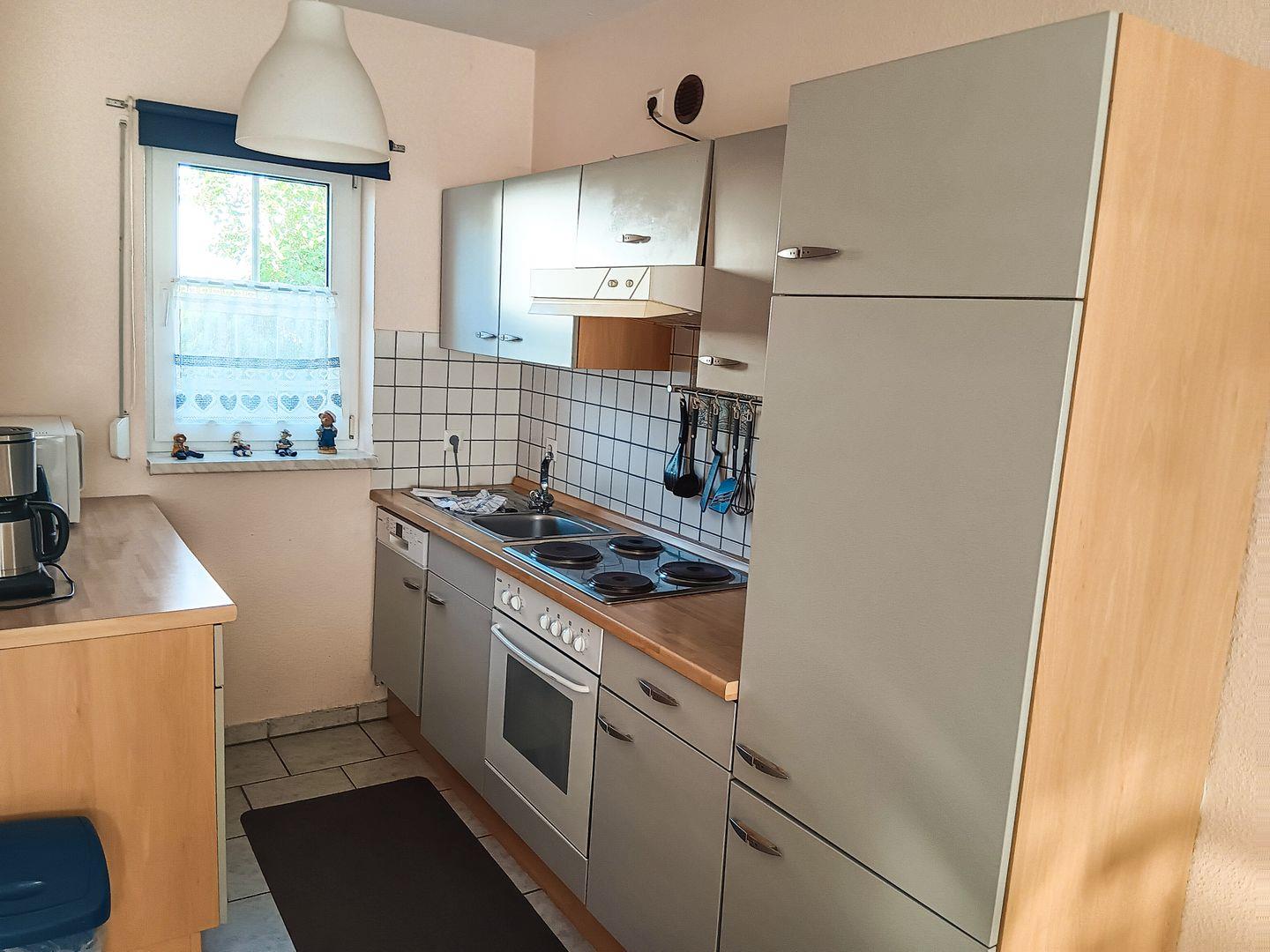 Im Erdgeschoss lädt der helle Wohnbereich mit moderner Einrichtung zum Entspannen ein. Hier können Sie nach einem Tag am Meer gemütliche Stunden verbringen. Der offene Essbereich mit einem großzügigen Esstisch und die gut ausgestattete Küchenzeile lassen keine Wünsche offen: Herd, Backofen, Kühlschrank mit Gefrierfach, Geschirrspüler und weitere Annehmlichkeiten machen das Kochen und Genießen unkompliziert und angenehm. Ein zusätzliches Gäste-WC sorgt für zusätzlichen Komfort.