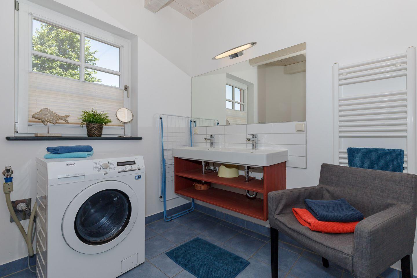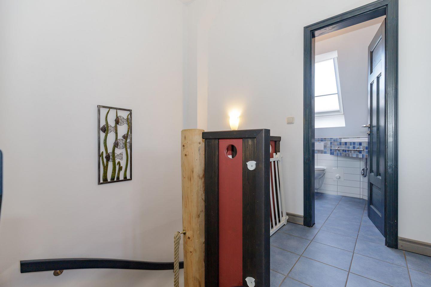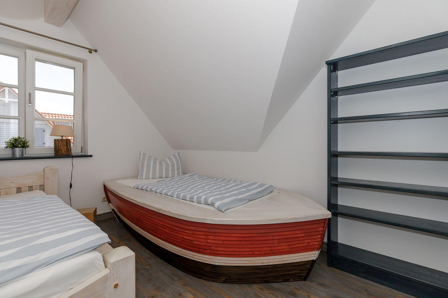 Insgesamt fünf geschmackvoll eingerichtete Schlafzimmer sorgen für erholsame Nächte. Die Einrichtung kombiniert natürliche Materialien, helle Farben und maritime Akzente – für das Gefühl, direkt an der Ostsee zu wohnen. Zwei moderne Badezimmer mit Dusche und Fußbodenheizung bieten zusätzlichen Komfort.