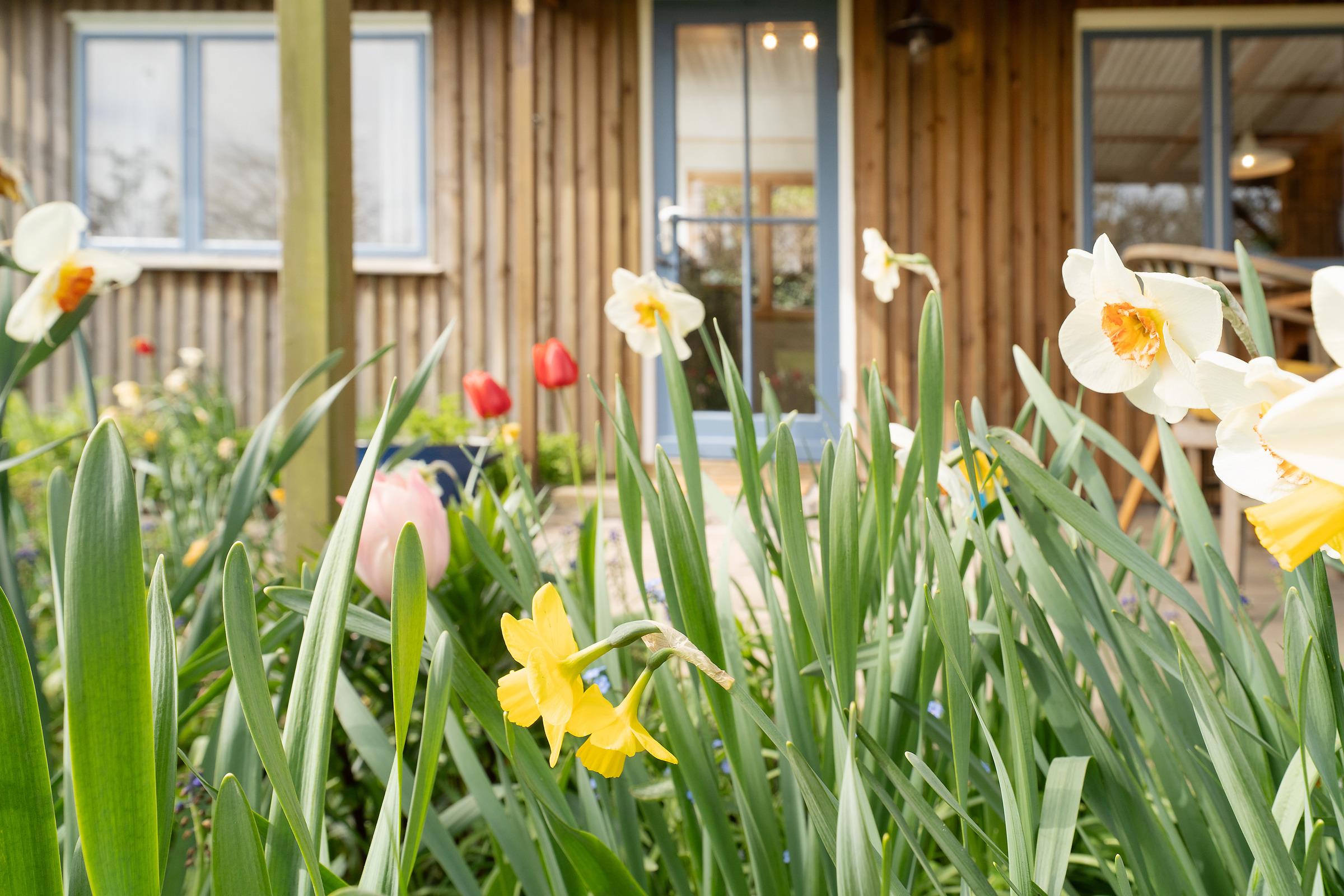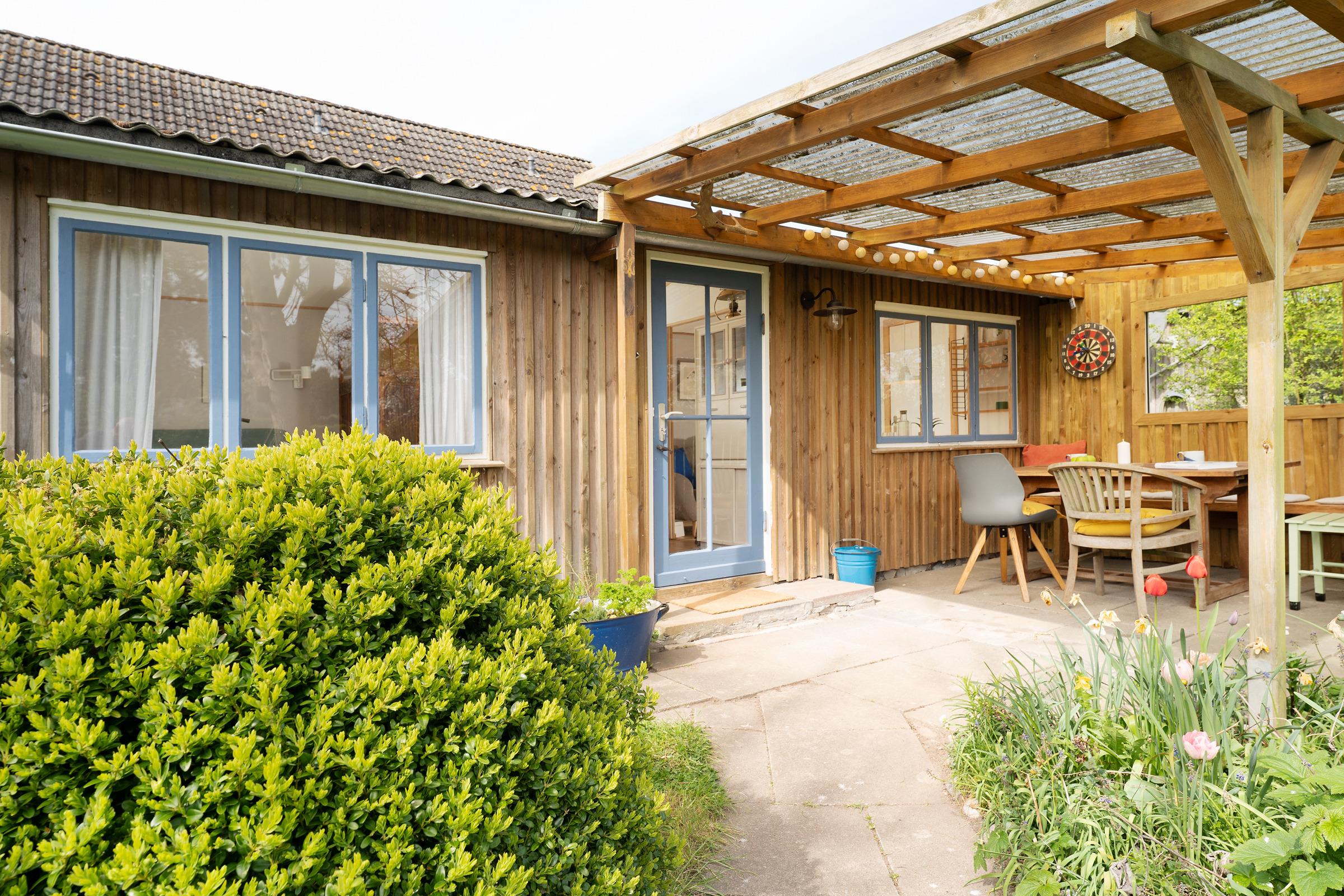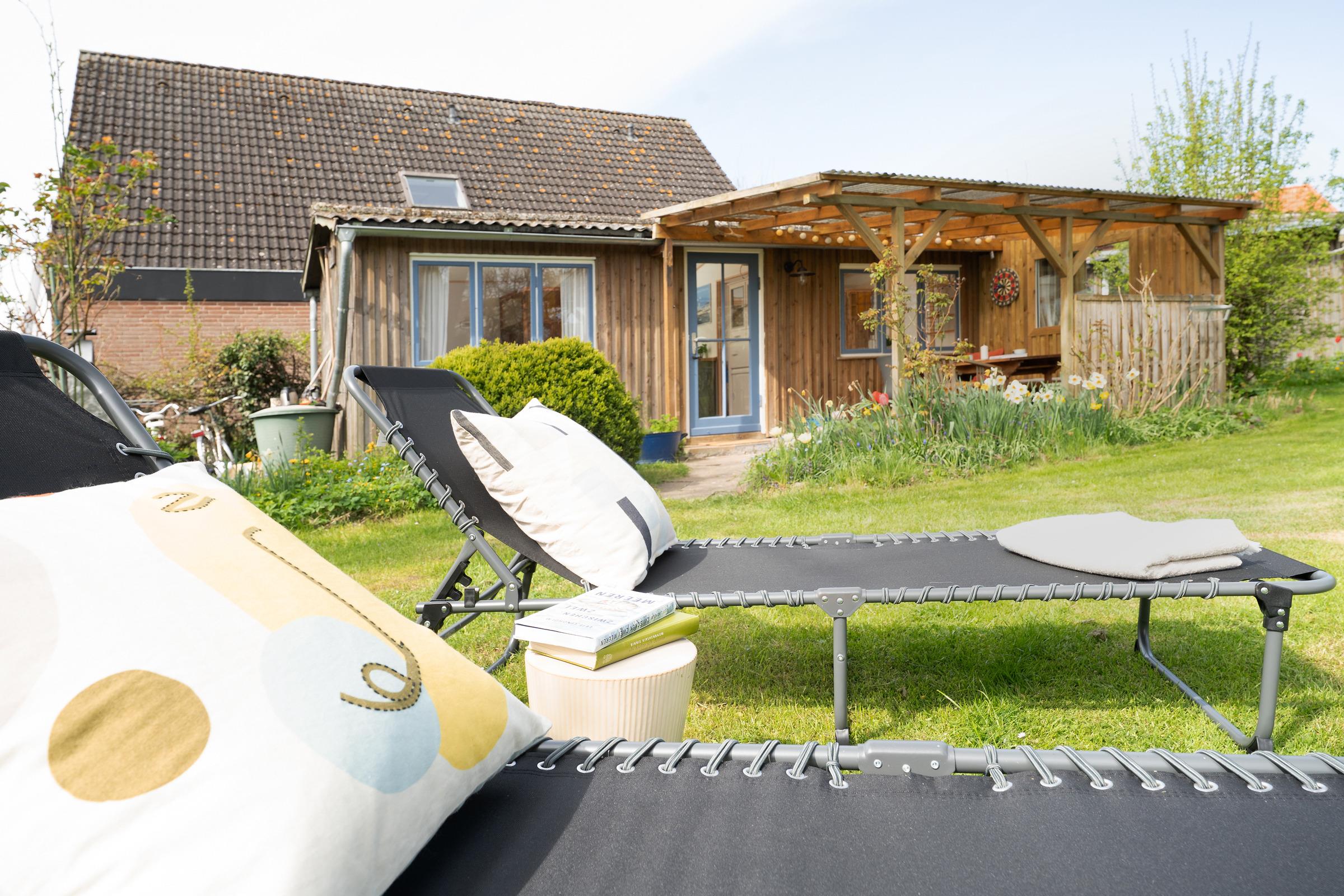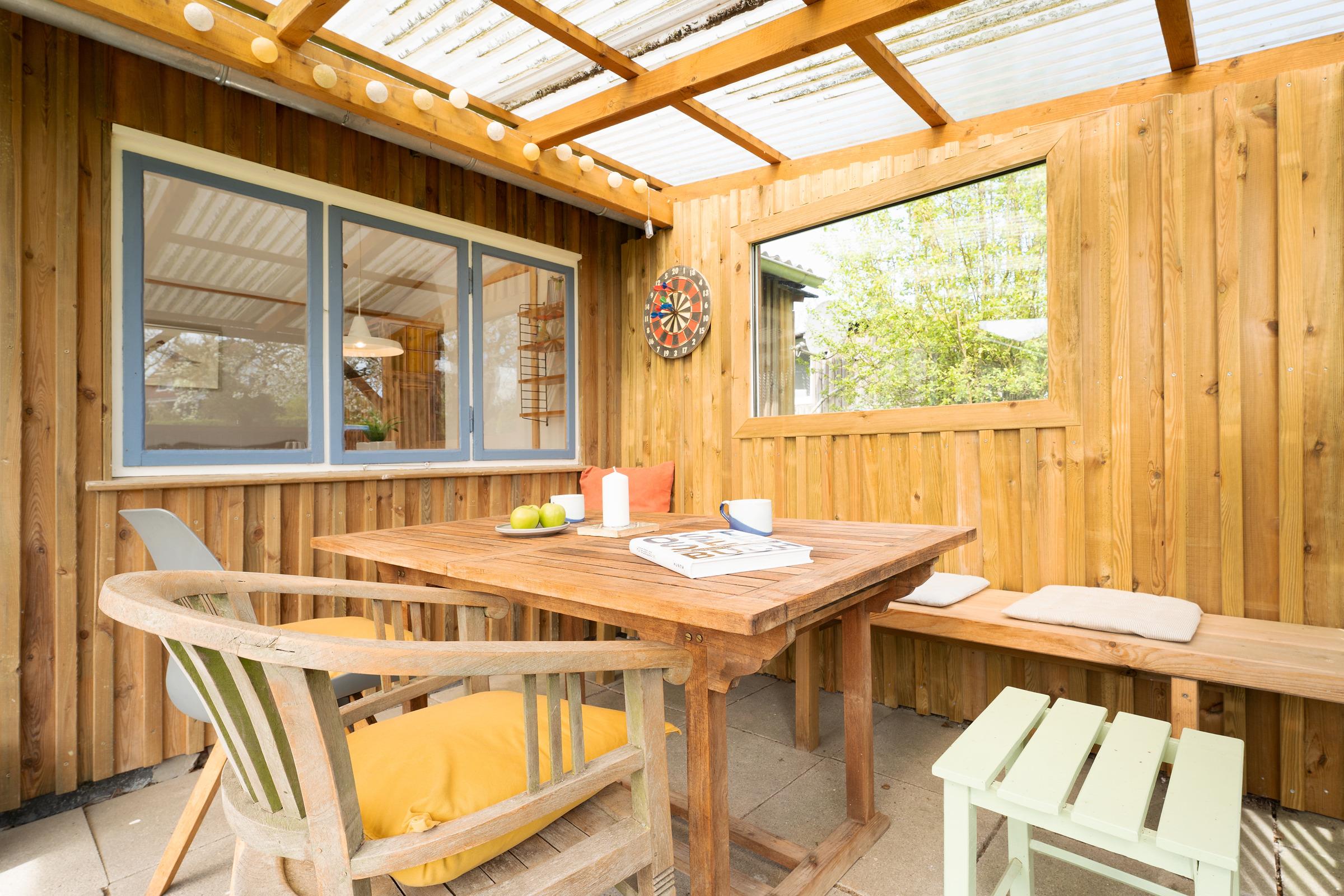 Die große Terrasse ist mit Gartenmöbeln ausgestattet – perfekt für ein Frühstück an der frischen Luft. Auch eine Tischtennisplatte steht Ihnen im Gemeinschaftsgarten zur Verfügung.