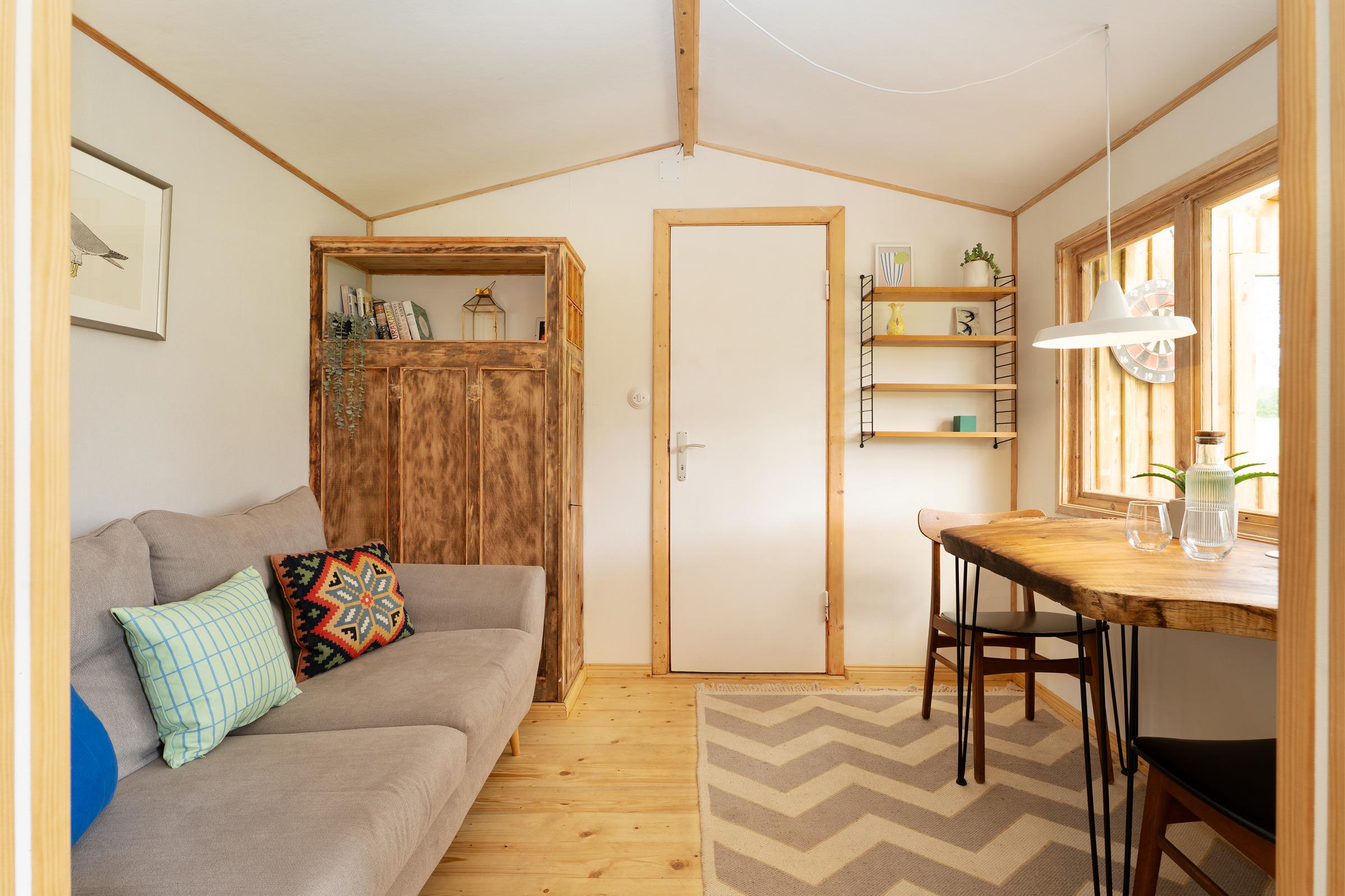 Der Wohnbereich ist funktional gestaltet und bietet eine komfortable Sitzecke für entspannte Abende.