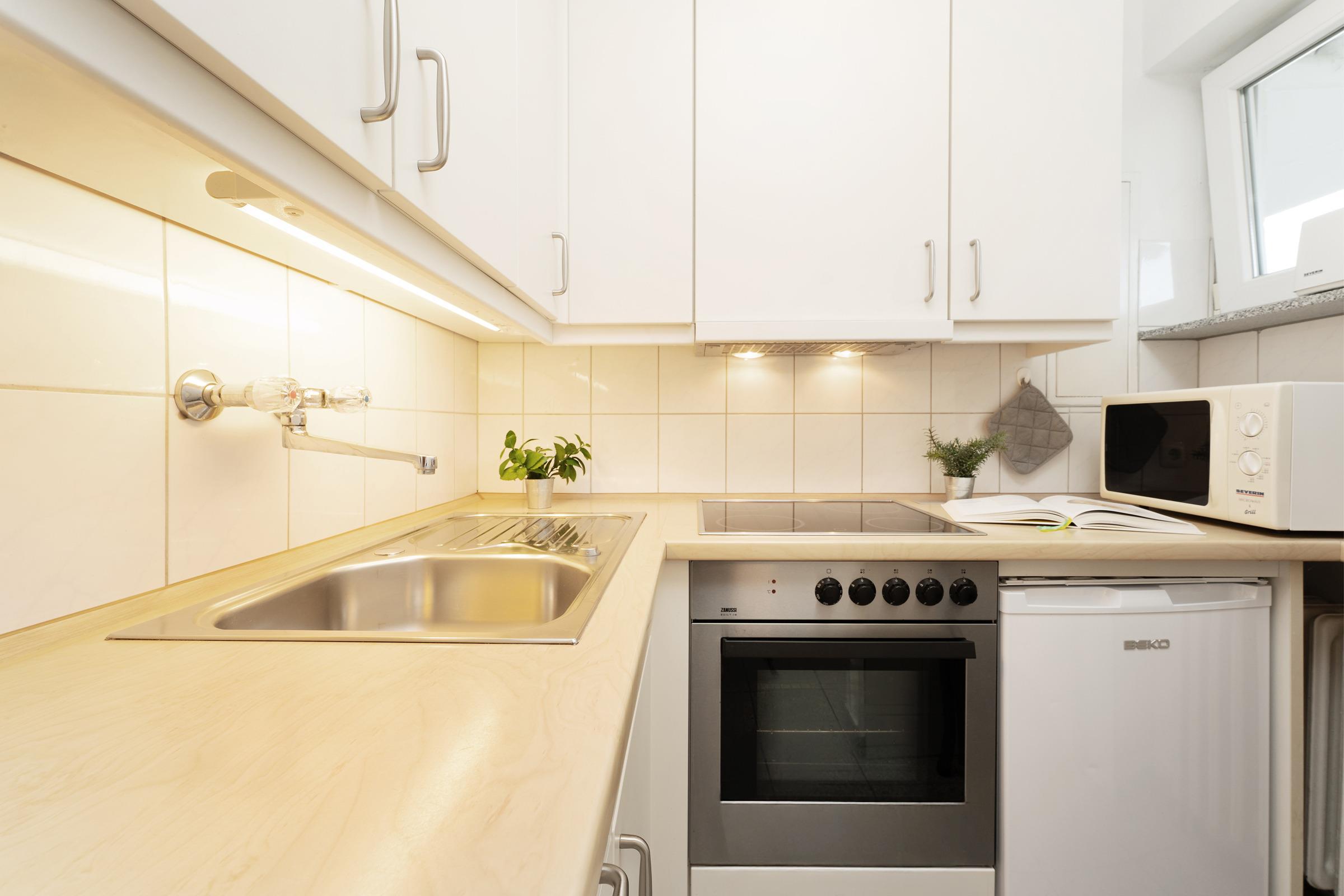 Die moderne Küche ist voll ausgestattet mit Backofen, Herd, Kühlschrank mit Gefrierfach, Mikrowelle, Kaffeemaschine und Wasserkocher und lässt keine Wünsche offen. Ein einladender Essbereich schließt sich an und bietet Platz für gemeinsame Mahlzeiten. Zwei separate Schlafzimmer mit jeweils einem Doppelbett sorgen für erholsame Nächte.
