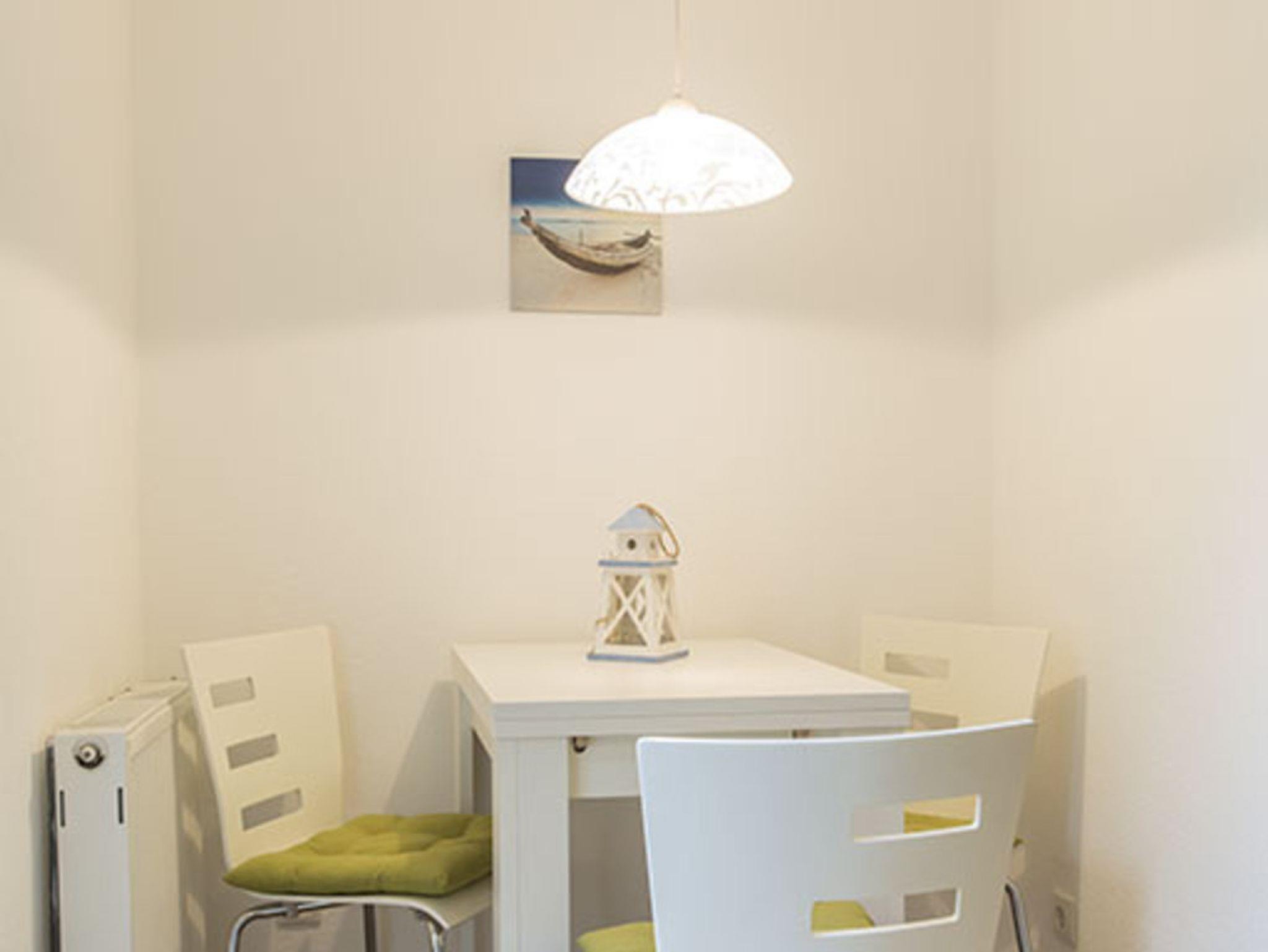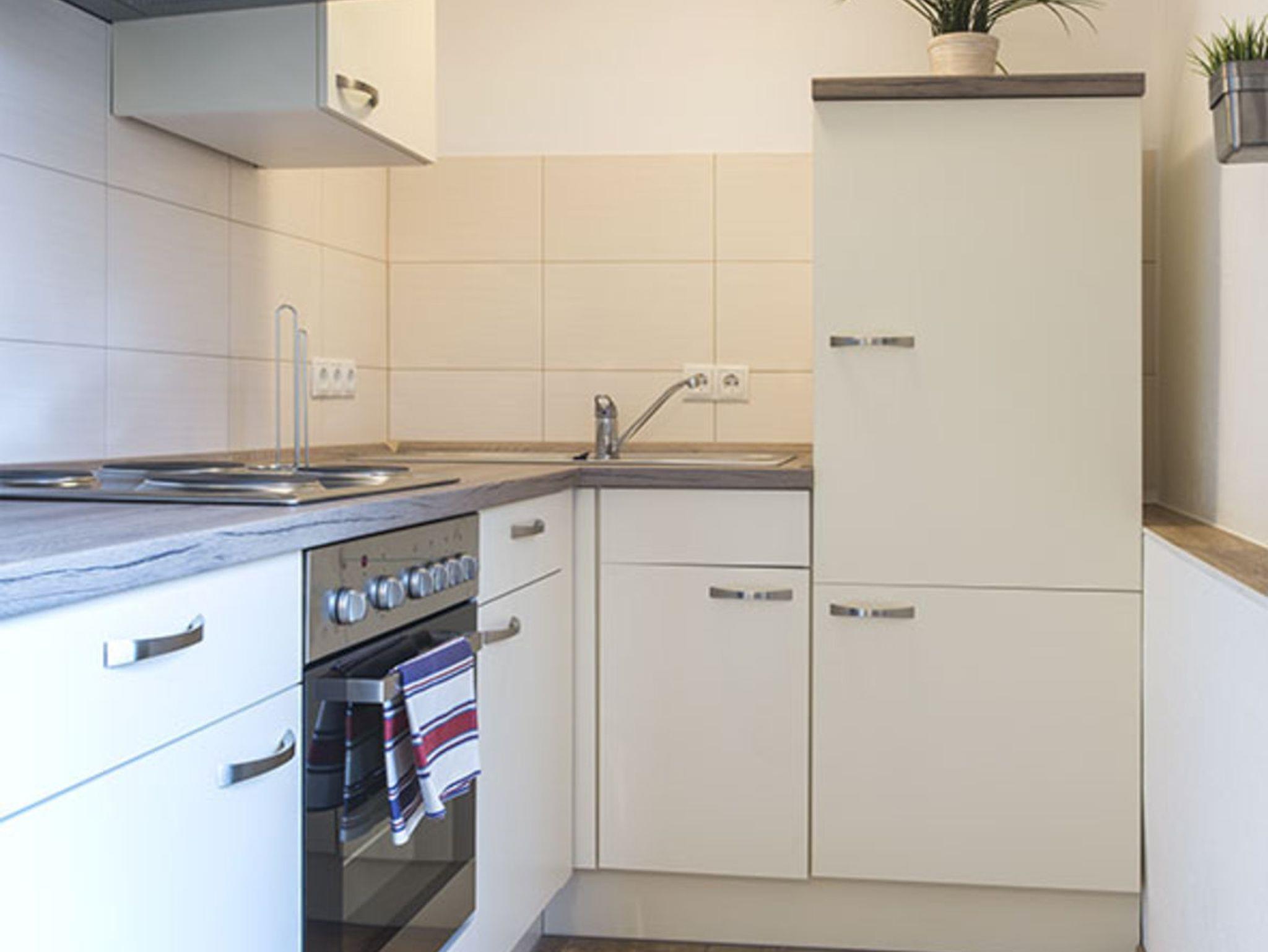 Die Küche ist mit Kühlschrank, Cerankochfeld und Backofen ausgestattet. Kaffeemaschine, Wasserkocher und Toaster sind ebenso selbstverständlich wie ausreichend Geschirr und Besteck. Der Essbereich ist bei 3 Personen etwas eingeschränkt.