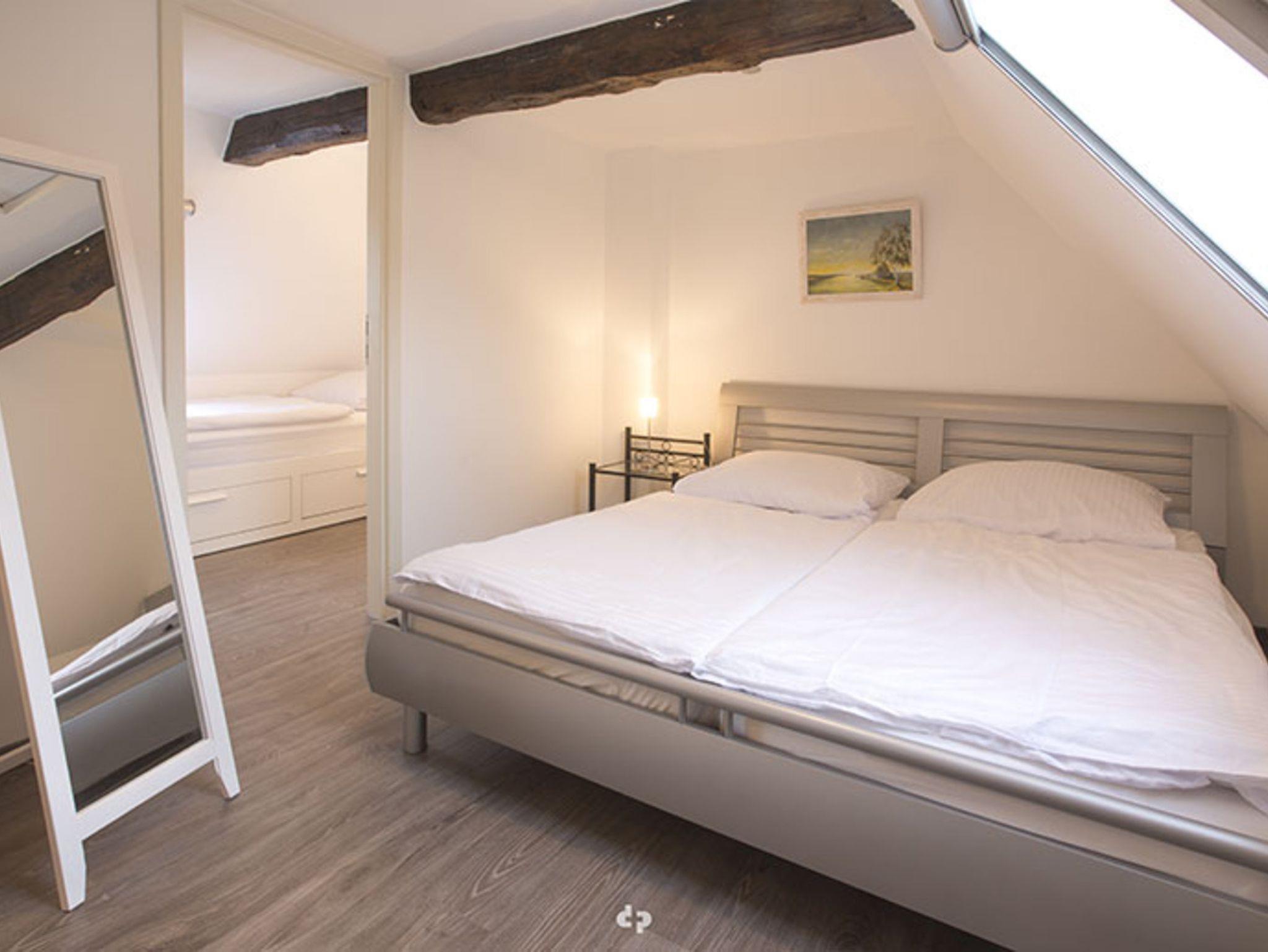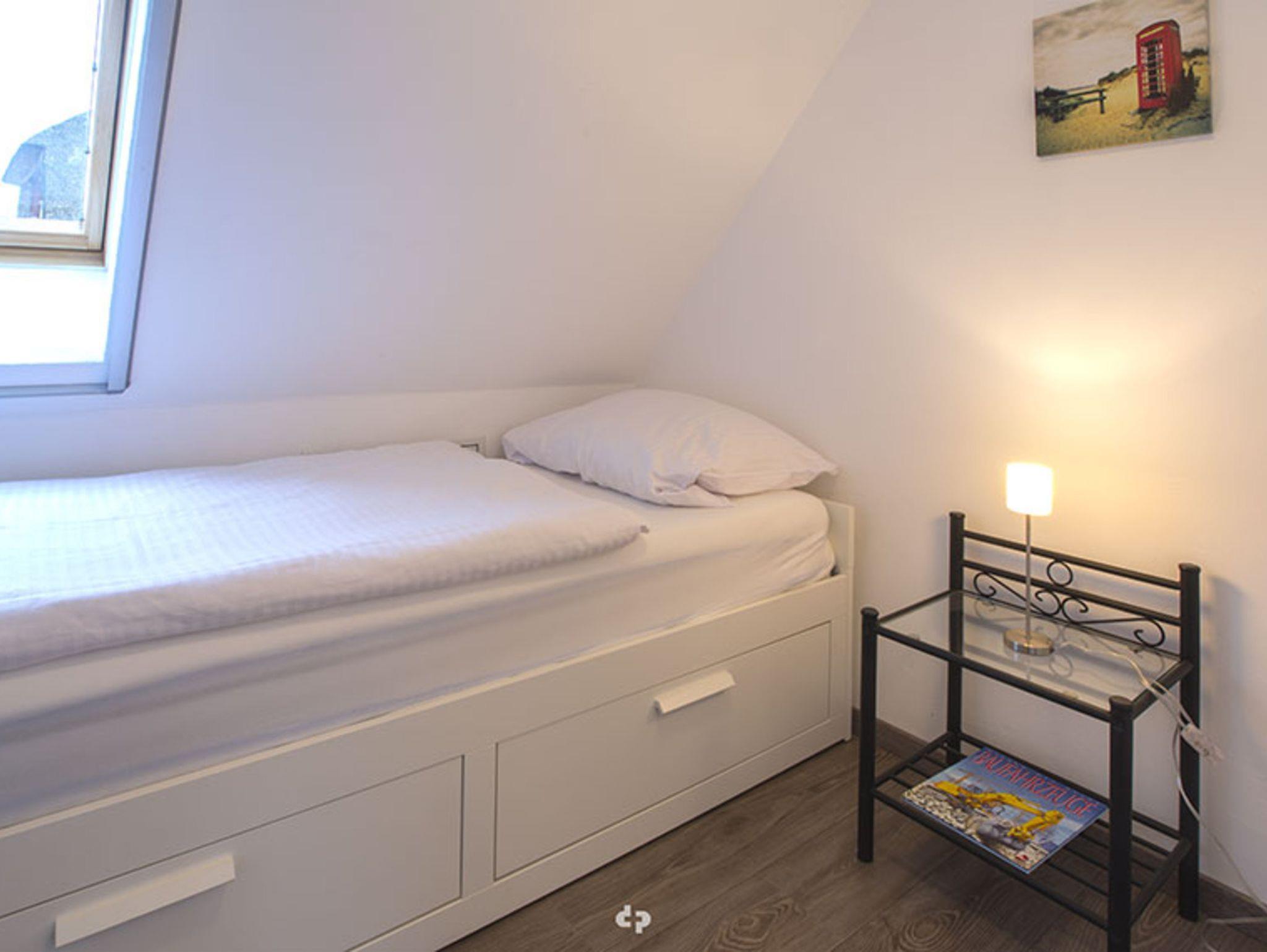Im Dachgeschoss befinden sich ein offener Schlafbereich mit einem Doppelbett, sowie ein separates Schlafzimmer mit einem Einzelbett. Vom Küchen- und Essbereich gelangen Sie auf die Terrasse mit Gartenmöbeln.