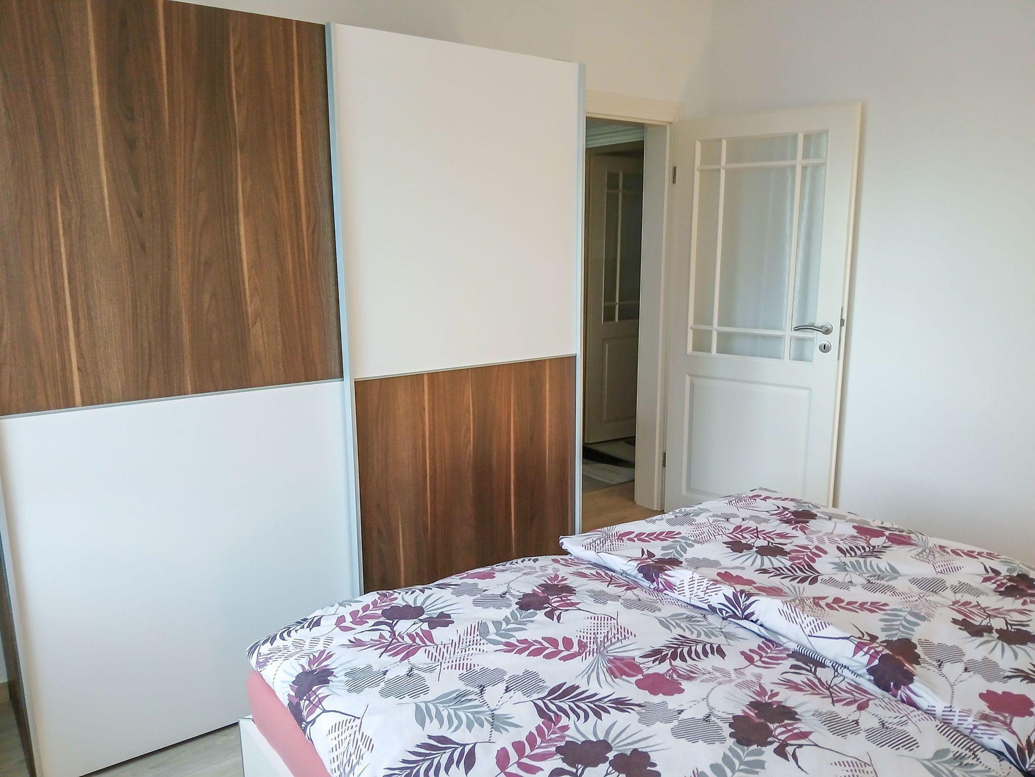 Die Ferienwohnung Kleine Auszeit bietet auf großzügigen 80 m² Platz für bis zu 3 Personen und 1 Kind bis 12 Jahren. Im Wohnzimmer könnt ihr es euch auf einem gemütlichen Sofa bequem machen, den TV einschalten oder einfach die Zeit miteinander genießen. Für zusätzliche Schlafmöglichkeiten sorgt das Tandembett (2x90x195), das ideal für eine erholsame Nachtruhe ist. Das Schlafzimmer ist mit einem komfortablen Doppelbett (180x200) ausgestattet und ein Kleiderschrank bietet ausreichend Stauraum für eure Kleidung.