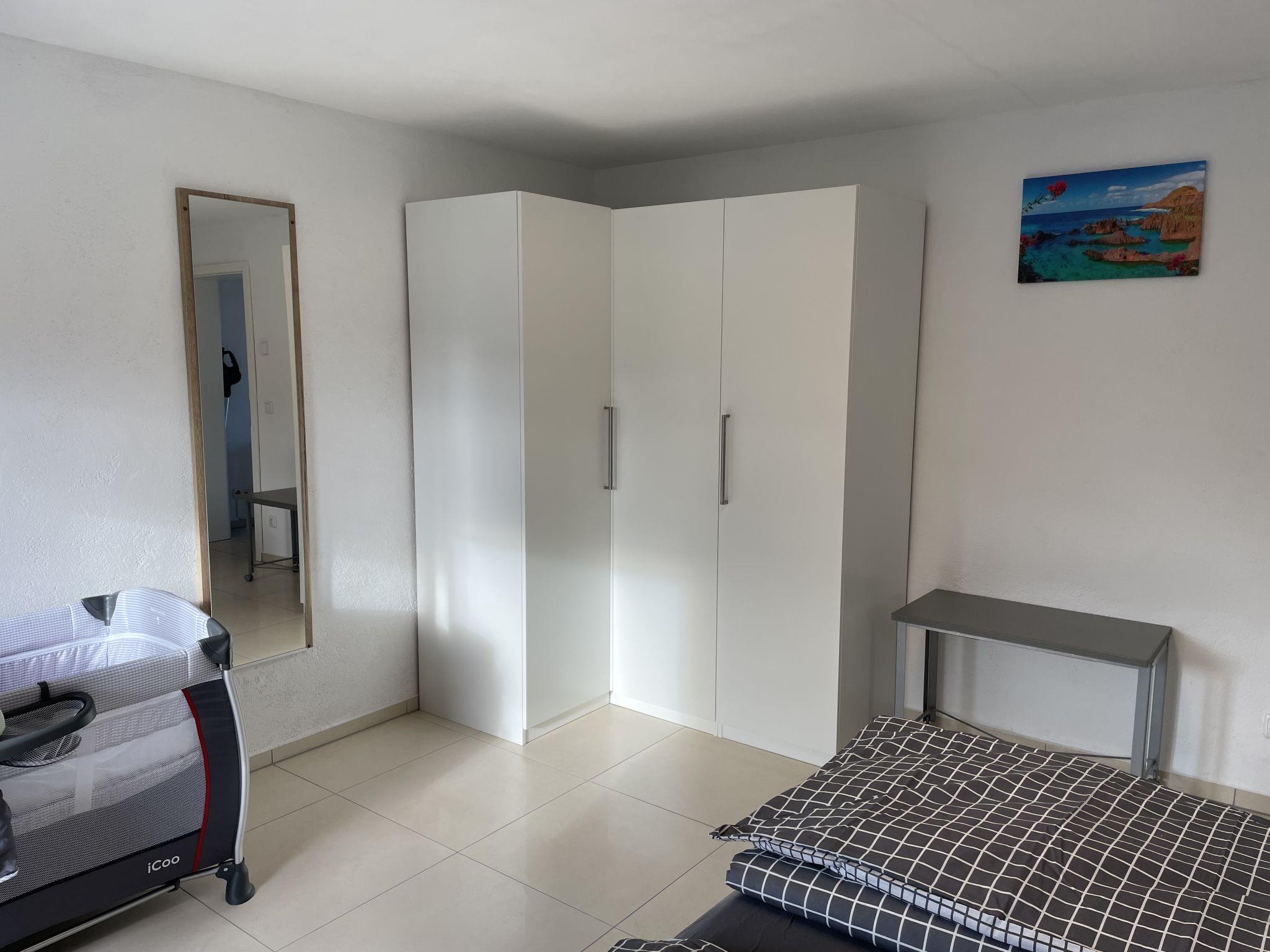 2-Zimmer-Wohnung 60 m2 im 1. Stock. Geräumig und hell, renoviert im Jahre 2020, schön und modern eingerichtet: 17 m2, 1 Zimmer mit 1 Doppelbett (180 cm, Länge 200 cm). Wohnzimmer mit 1 Diwanbett (140 cm, Länge 200 cm), Sat-TV, Flachbildschirm und E-Heizung. Offene Küche (Geschirrspüler, 2 Glaskeramikplatten, Mikrowelle, Grill, elektrische Kaffeemaschine) mit Esstisch, Radio. Dusche/WC. Natursteinboden. Kleine Terrasse 12 m2. Terrassenmöbel, Gartengrill. Zur Verfügung: Safe, Babybett, Haartrockner, Wickelkommode. Internet (Wireless LAN, gratis). Bitte beachten: geeignet für Familien. Nichtraucher-Unterkunft. Eigener Eingang, Rauchmelder, Feuerlöscher.