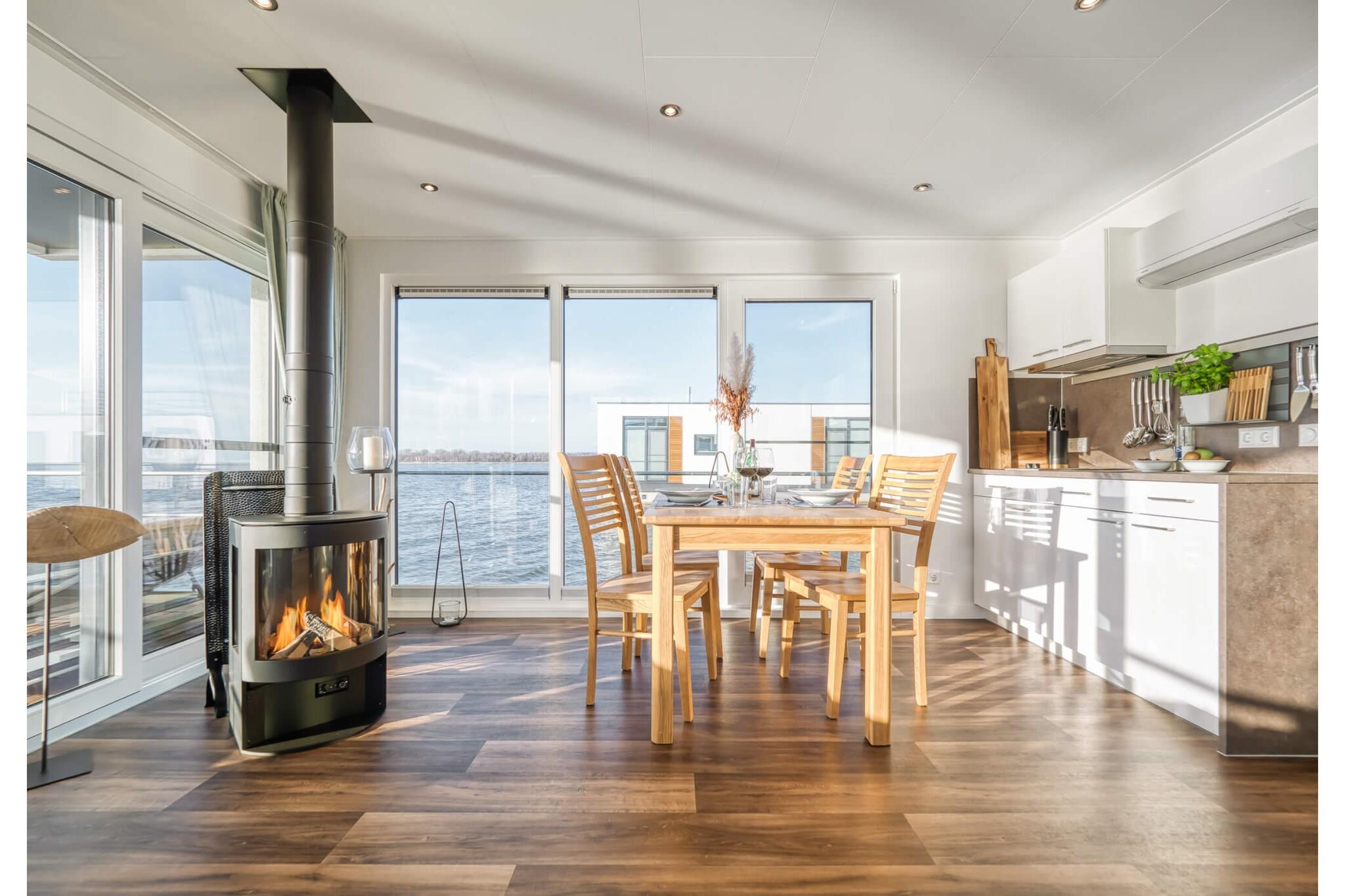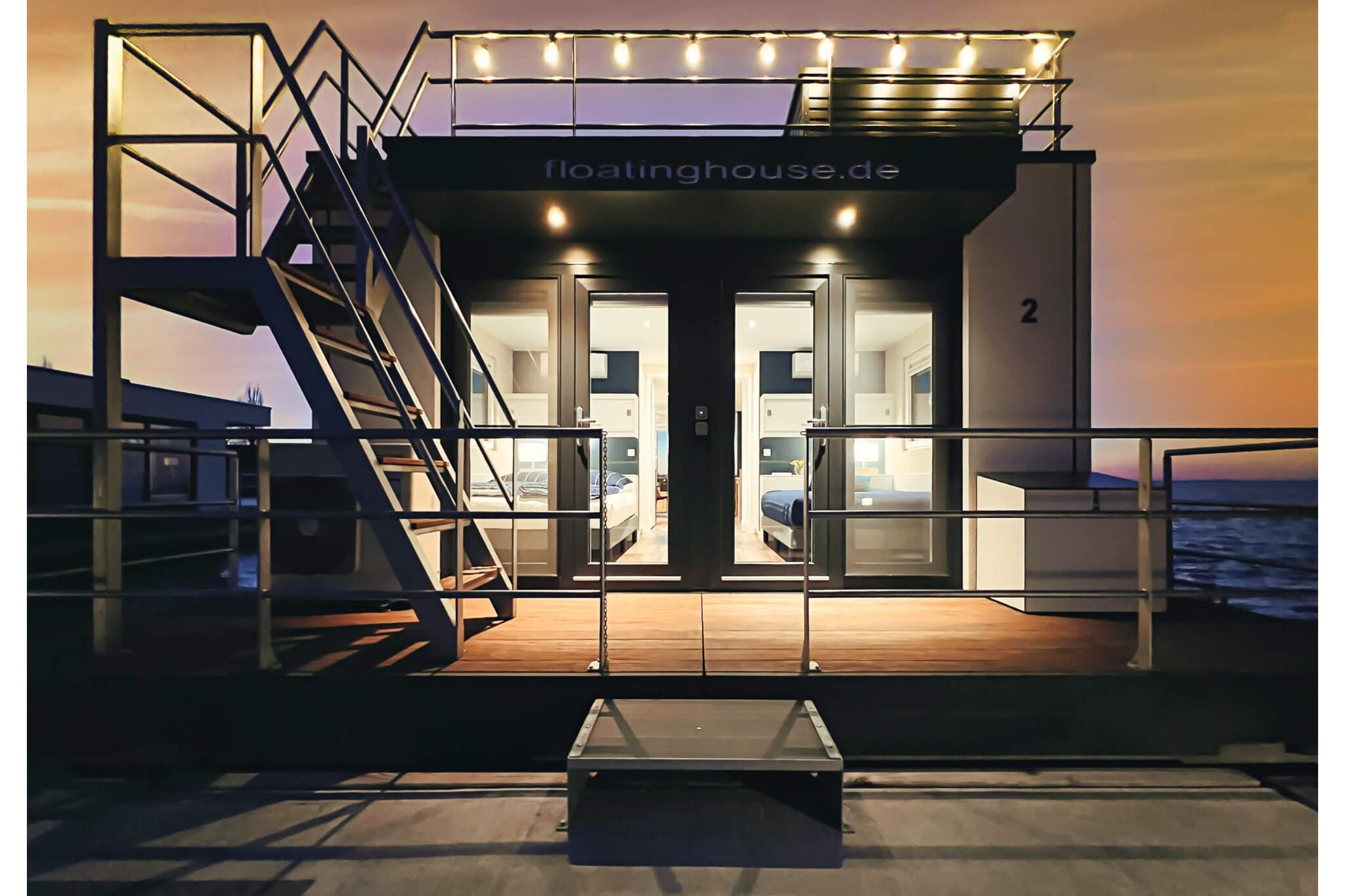 Stilvolles Hausboot nahe Ostseeküste mit Terrasse und moderner Ausstattung.