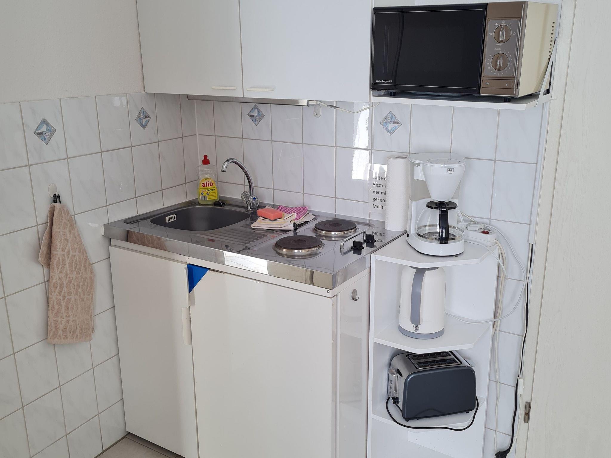 Unsere Zweiraum-Ferienwohnung befindet sich im Erdgeschoss und ist für bis zu 2 Personen geeignet. Die Ferienwohnung bietet einen kombinierten Wohn- und Küchenbereich sowie ein separates Schlafzimmer mit Doppelbett und ein Badezimmer mit Dusche/WC. Eine gemütliche Sitzecke im Garten mit Grillmöglichkeit lädt zum Verweilen ein. Ein Parkplatz ist inklusive.