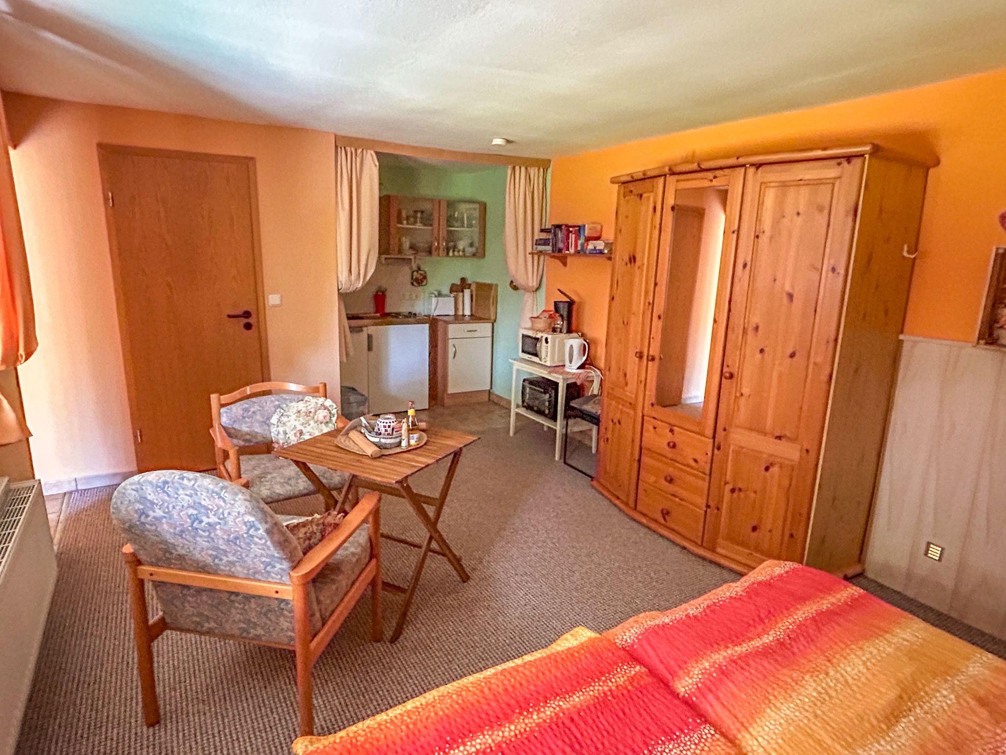 Der gemütliche Bungalow bietet dir auf 40 m² alles, was du für eine entspannte Auszeit zu zweit brauchst. Der helle Wohn- und Schlafraum ist mit zwei bequemen Schlafliegen (90x200, können einzeln und zusammen stehen), einem Tisch, zwei Sesseln, TV und einem Kleiderschrank ausgestattet. In der praktischen Kochnische findest du eine Pantryküche mit Kochmöglichkeit, Mikrowelle, Mini-Backofen und allem, was du für kleine Mahlzeiten oder das Frühstück benötigst. Das Tageslicht-Bad mit Dusche ist hell und funktional eingerichtet.