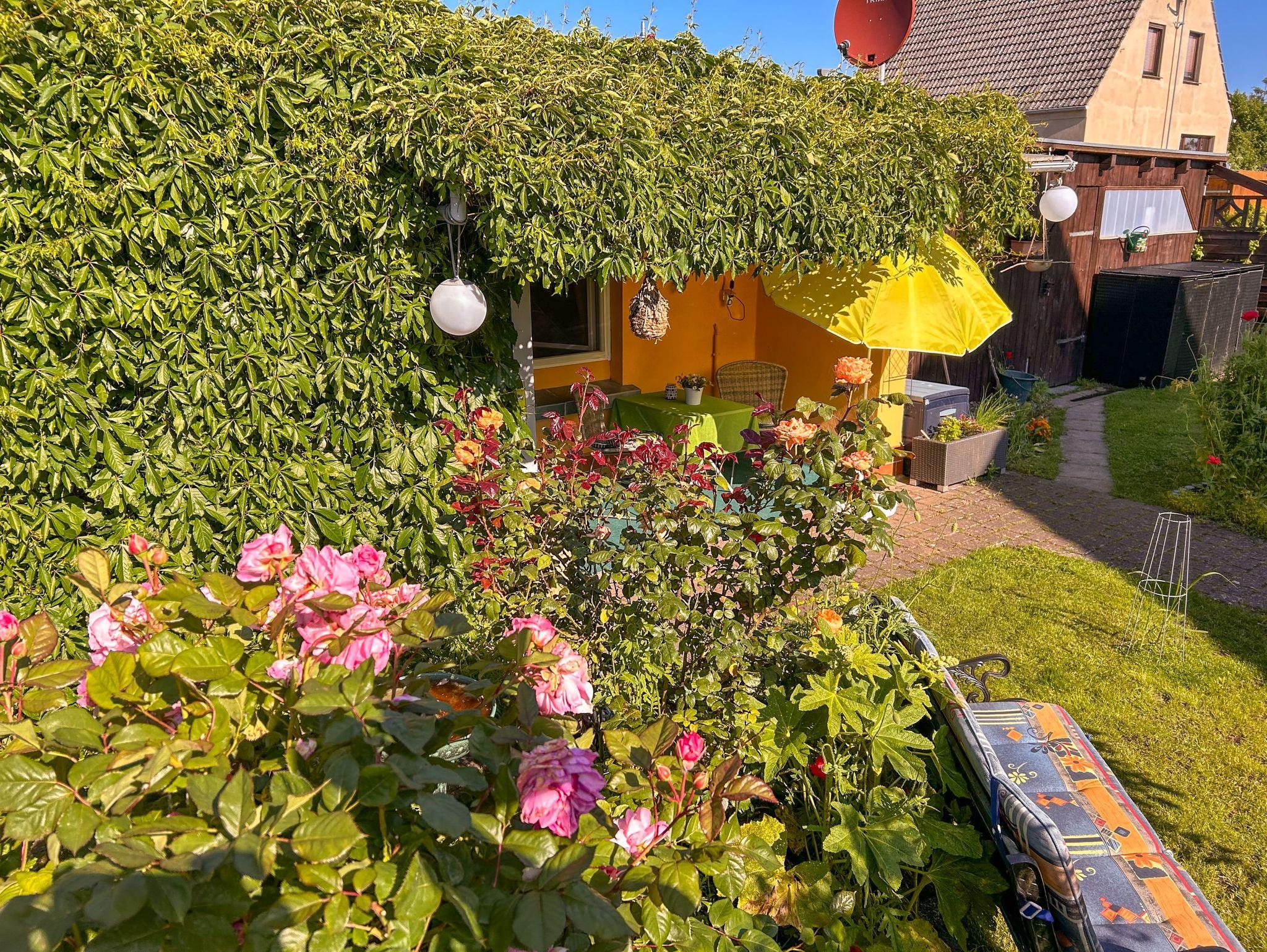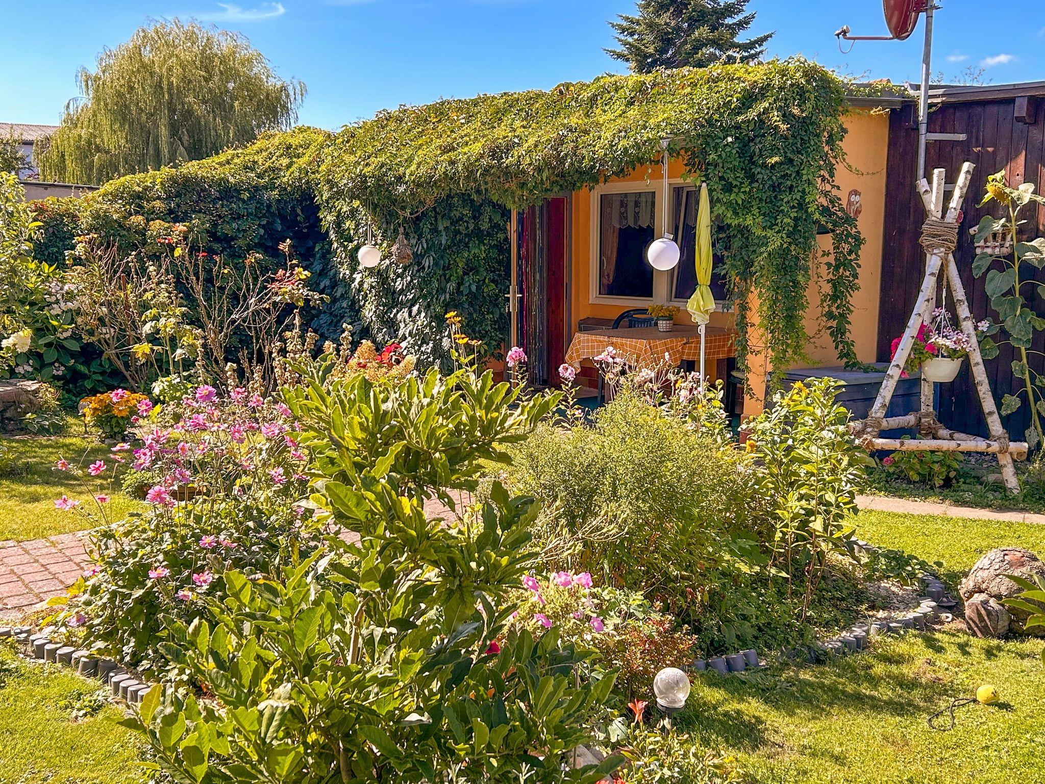 Gemütlicher Bungalow "Zur gemütlichen Weinlaube" in Ribnitz-Damgarten mit Terrasse, Garten und ruhiger Lage, ideal für Paare und Naturliebhaber.