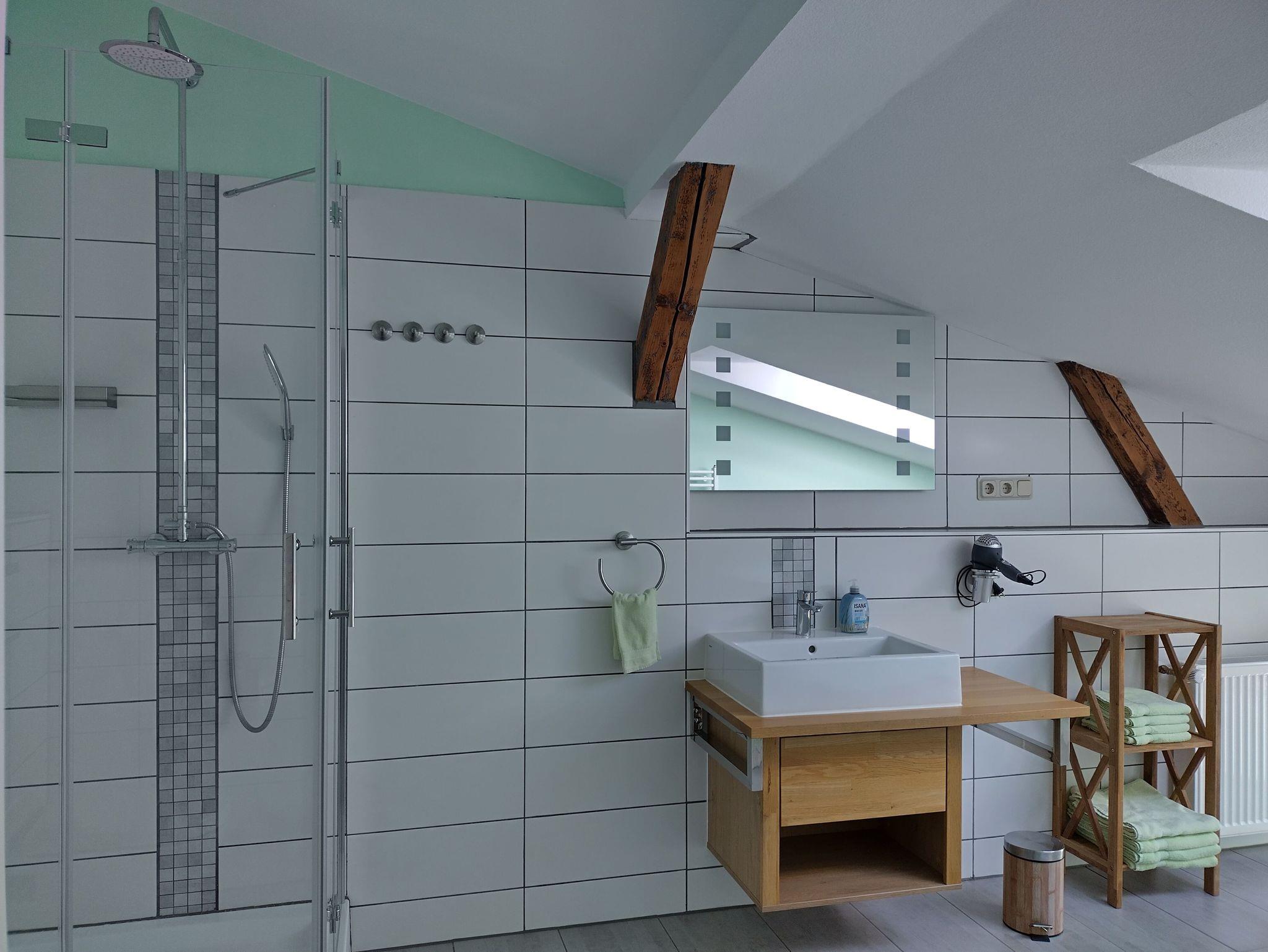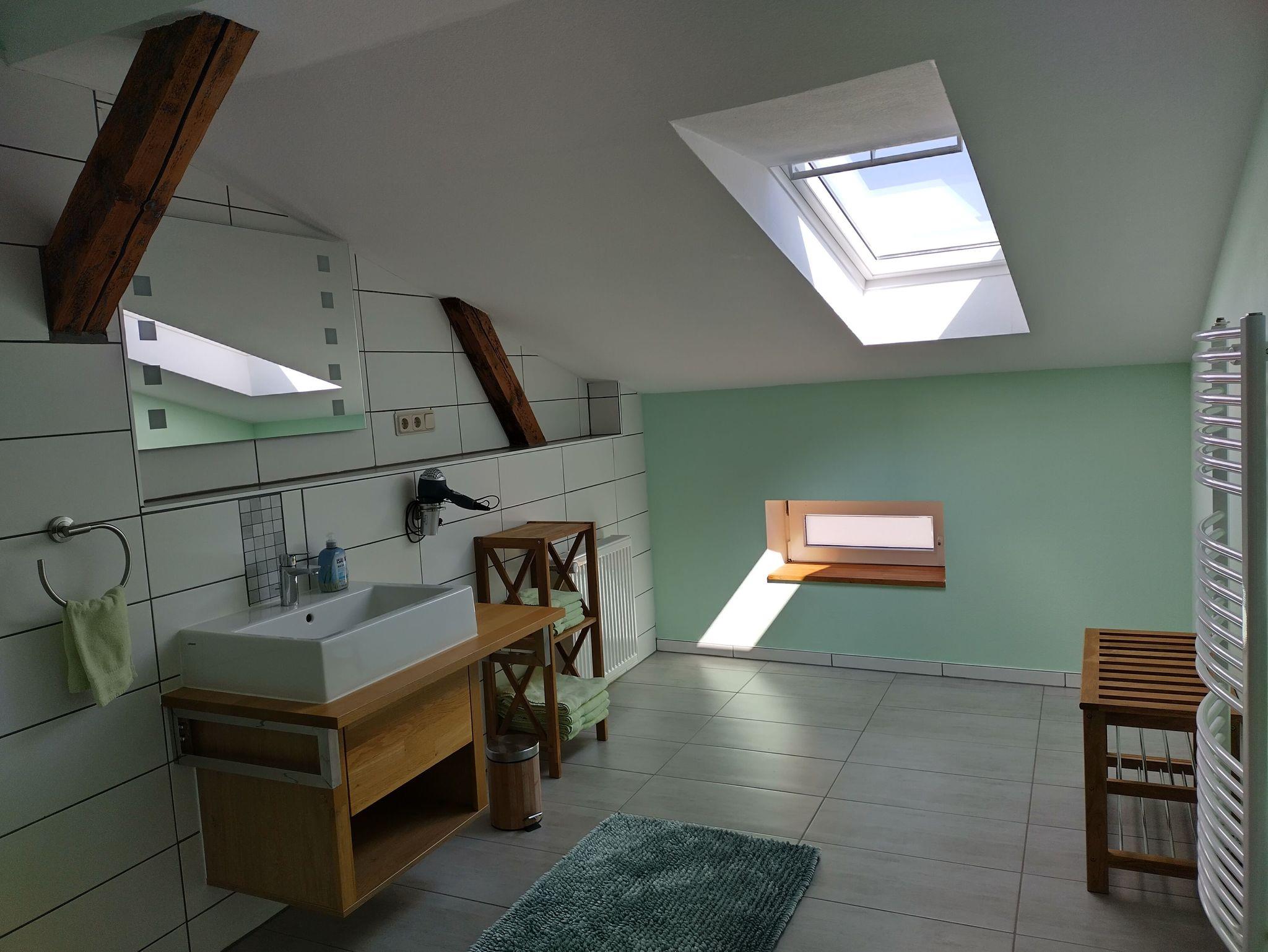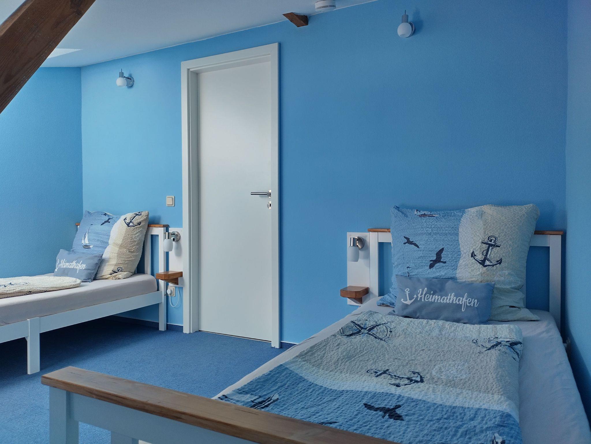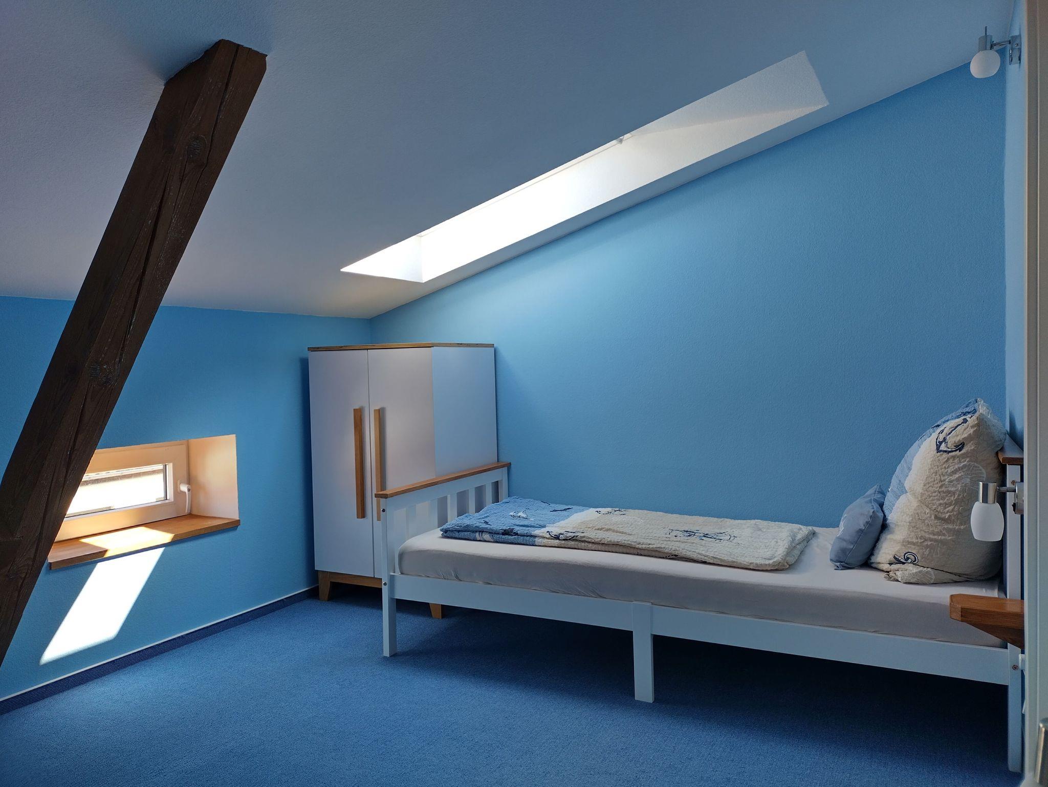 Moderne Ferienwohnung im Dachgeschoss eines historischen Stadthauses in Ribnitz-Damgarten, zentral und familienfreundlich an der Ostseeküste.