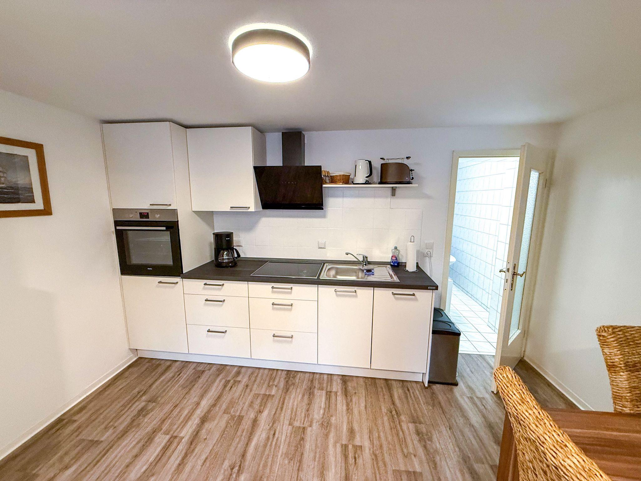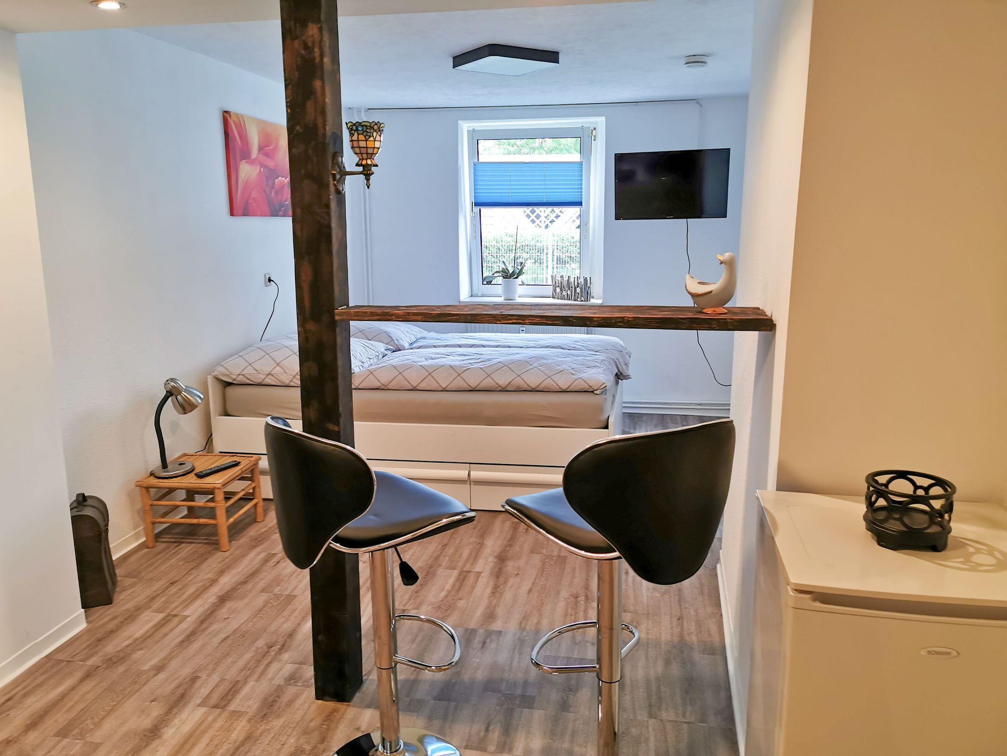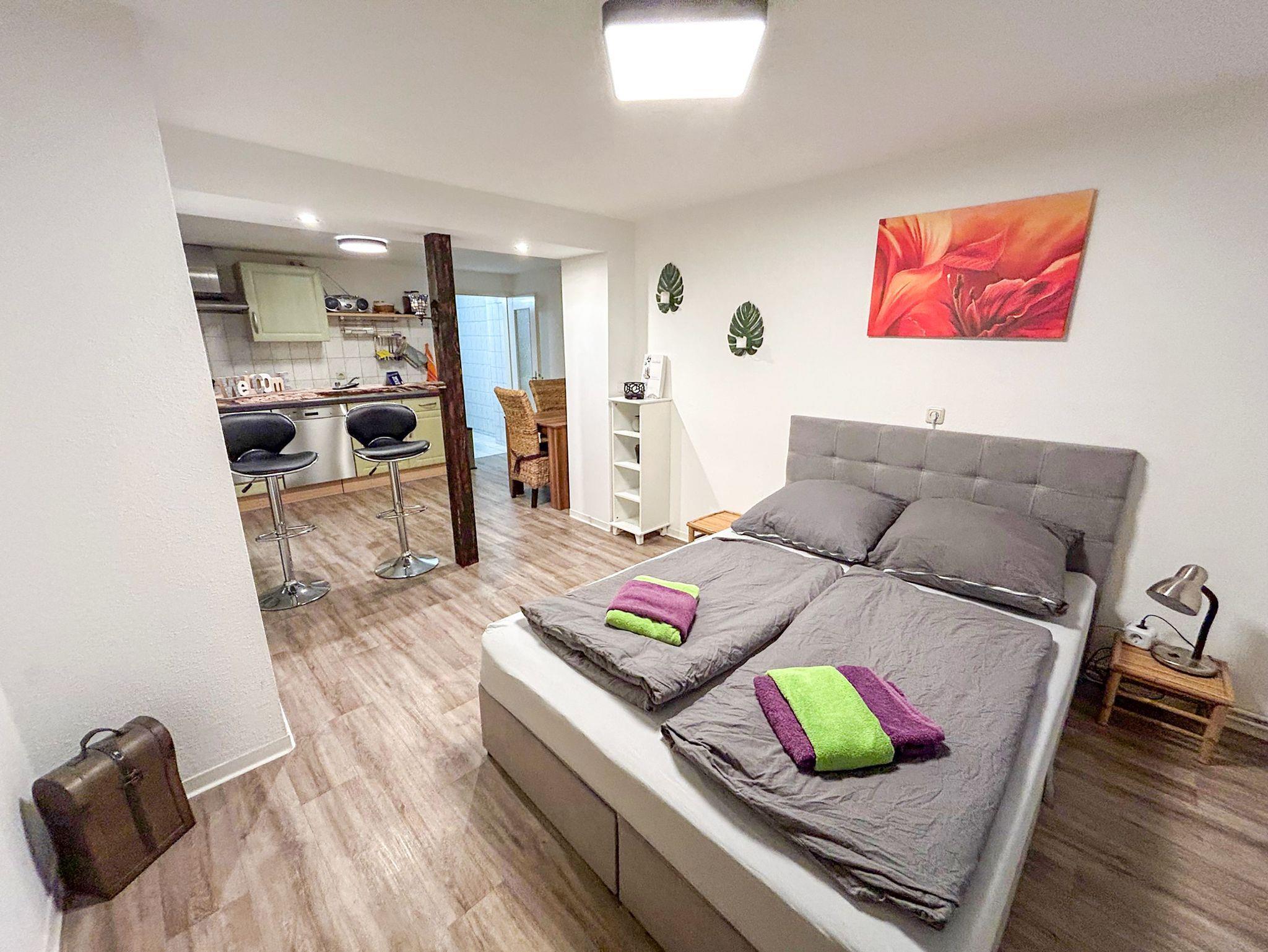 Die Ferienwohnung am Golfplatz ist ideal für Paare oder Alleinreisende und bietet auf 30 m² alles, was du für einen entspannten Aufenthalt brauchst. Sie liegt im Erdgeschoss und hat einen eigenen Eingang ? so kannst du deinen Urlaub in Ruhe genießen. Im kombinierten Wohn- und Schlafbereich sorgt ein bequemes Doppelbett (140x200) für erholsame Nächte - hier kannst du den Tag entspannt vor dem TV ausklingen lassen. Optisch wird der Schlafbereich von einem Balken mit Hochtisch und zwei Barstühlen von der Küche getrennt, was eine lockere Atmosphäre schafft. Die offene Küche mit Esstisch ist bestens ausgestattet: Backofen, Herd, Spülmaschine, Kühlschrank mit Gefrierfach, Mikrowelle, Kaffeemaschine, Wasserkocher und sogar ein Radio sorgen dafür, dass es dir beim Kochen an nichts fehlt. Das Tageslichtbad punktet mit einer Badewanne, die zum Entspannen nach einem erlebnisreichen Tag einlädt. Im Flur findest du eine Garderobe und einen Kleiderschrank ? hier kannst du deine Sachen ordentlich verstauen. Für gemütliche Stunden im Freien, wartet im Garten eine Sitzecke auf dich. Hier steht dir auch ein Grill für gemeinsame BBQ-Abende zur Verfügung.