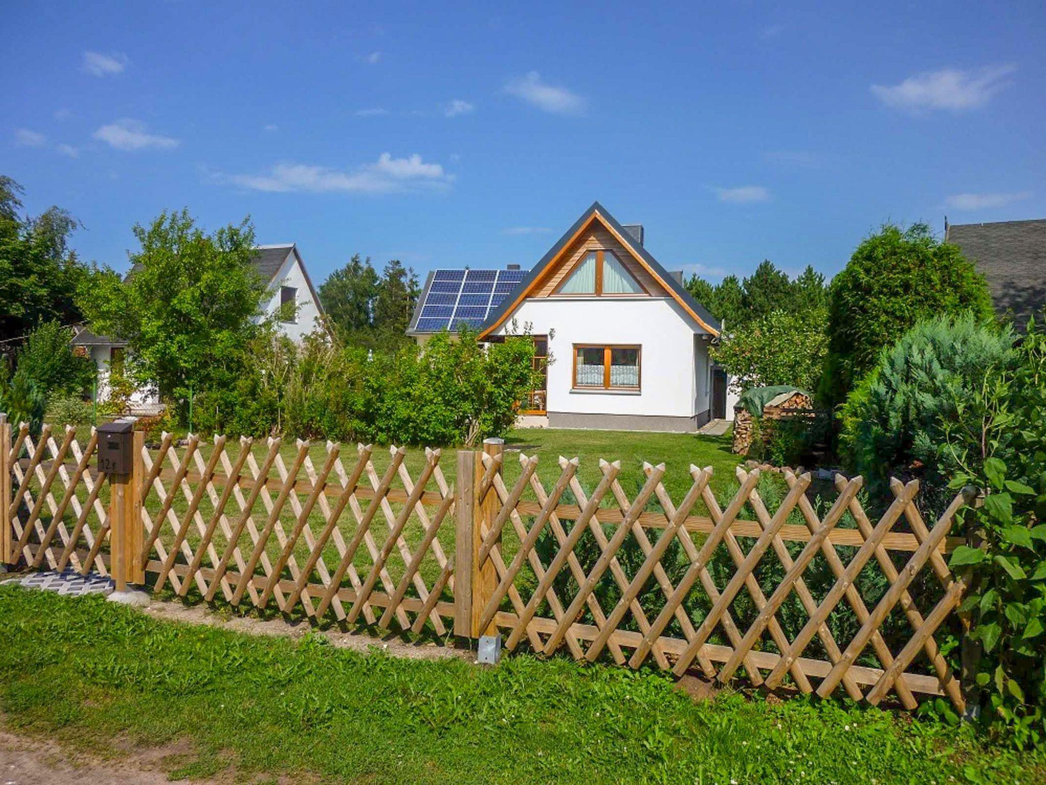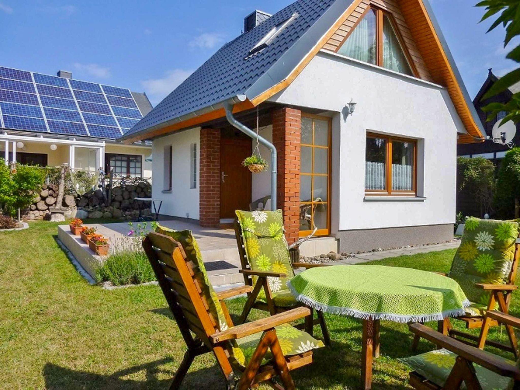 Charmantes Ferienhaus am Saaler Bodden mit Terrasse, Kamin und idyllischem Garten für einen erholsamen Urlaub in ruhiger Natur.