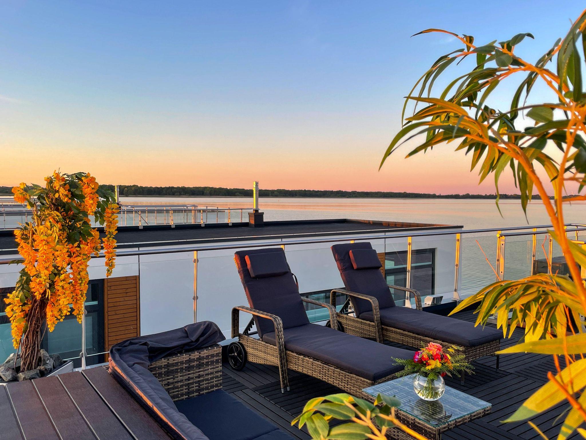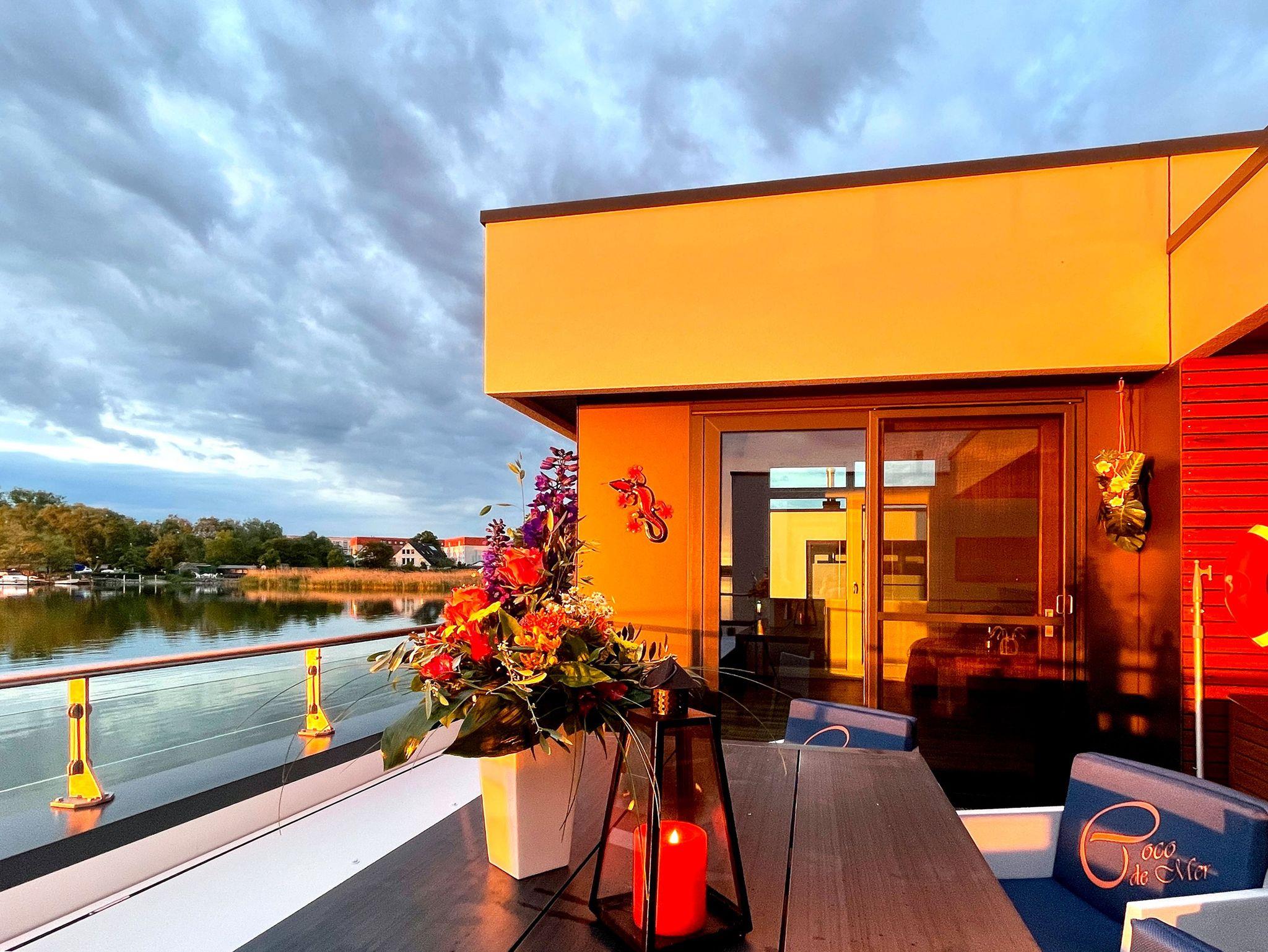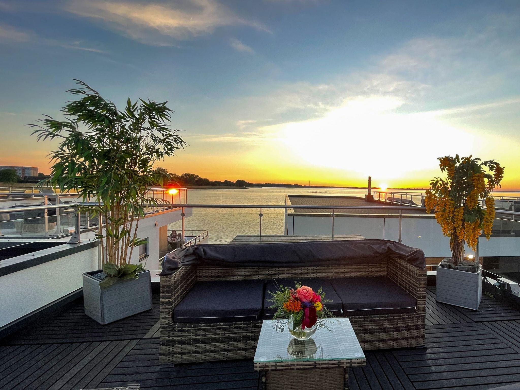 Erleben Sie Luxus und Entspannung auf dem schwimmenden Hausboot Floating Hideaway Coco de Mer in Ribnitz-Damgarten.