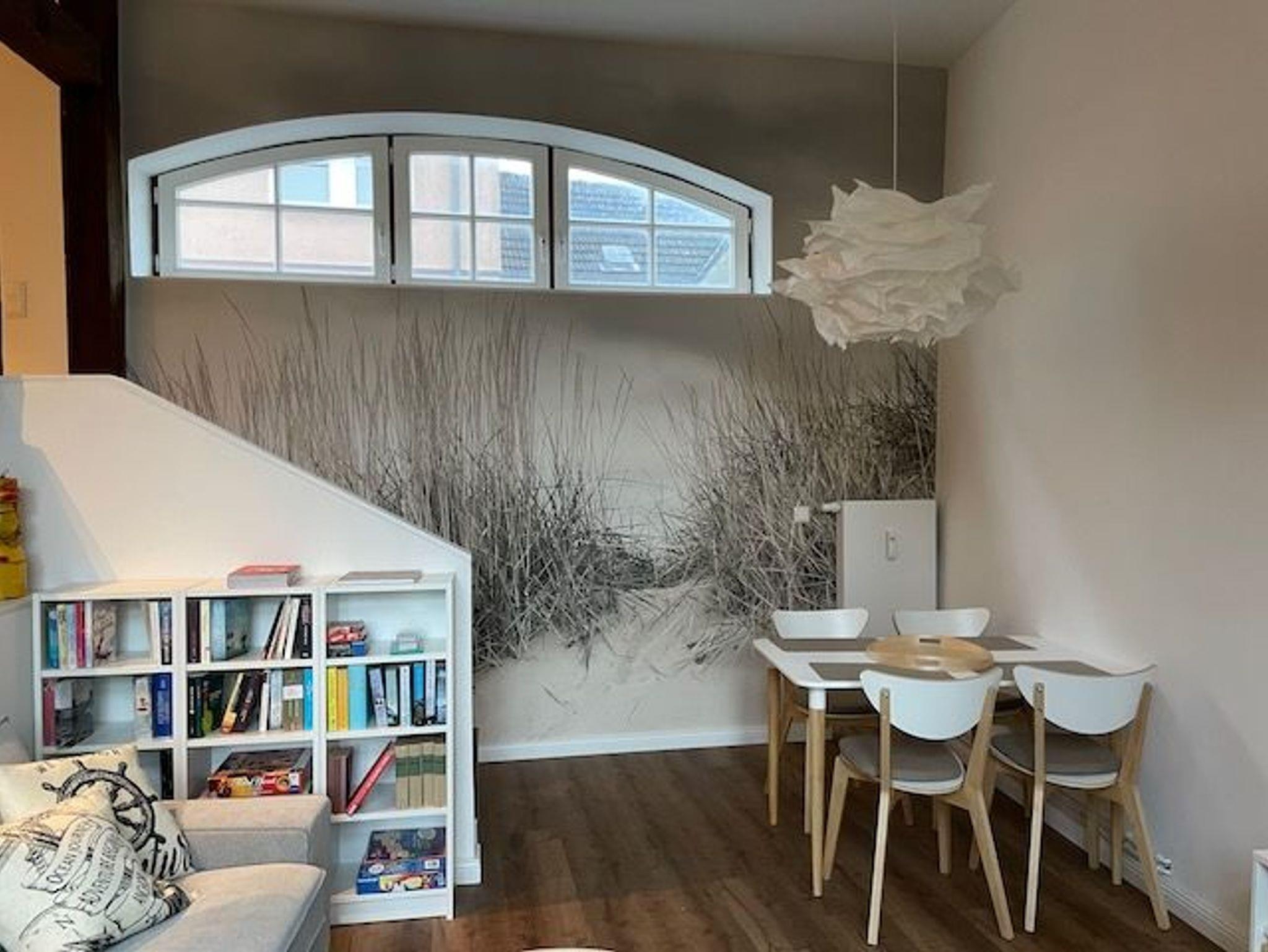 Die Ferienwohnung Nautilus ist mit viel Liebe zum Detail eingerichtet und besticht mit Ihrer außergewöhnlichen Raumaufteilung. Der große, lichtdurchflutete Wohnbereich mit direktem Zugang zur Terrasse lädt zum Verweilen ein. Die offene Küche befindet sich oberhalb des Wohnraum und ist voll Ausgestattet. Das maritimen Schlafzimmer mit Doppelbett verfügt über einen zweiten TV. Zusätzlich ist ein weiteres kleines Schlafzimmer mit einem Einzelbett vorhanden. Das Tageslichtbad mit Dusche ist gleich neben den Schlafzimmern. Eine Waschmaschine, kostenfreies W-Lan und ein kostenfreier PKW-Stellplatz runden das Angebot auf.
