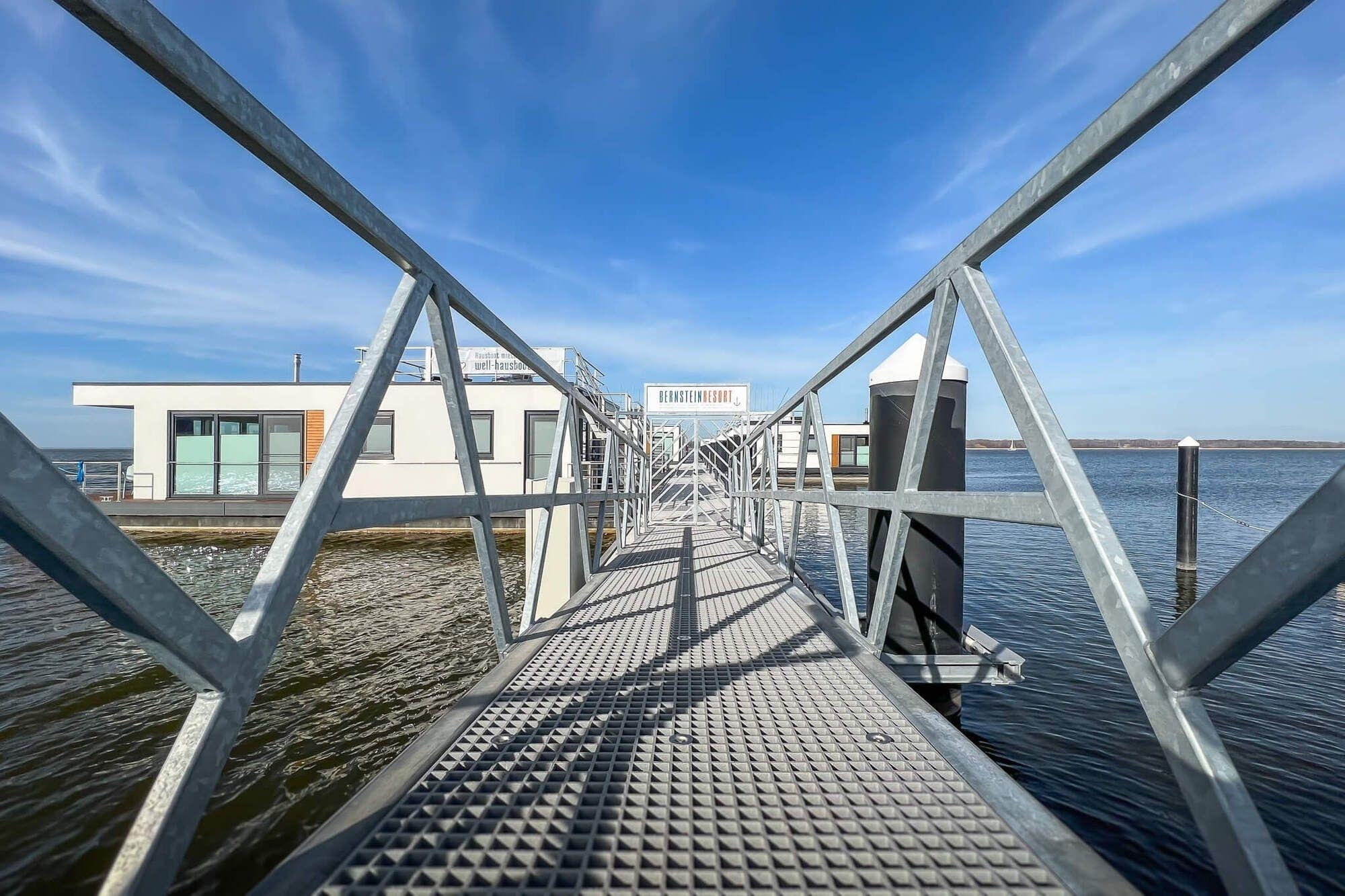 Ihren Wunsch, so nah wie möglich am Wasser zu urlauben, erfüllt das schwimmende Haus MEIN LIEBLINGSBOOT über 100 Prozent. Das luxuriös ausgestattete Haus liegt direkt "auf" statt "am" Wasser! Fest verankert an einem 200 m langen, schwimmenden Steg bietet es Freiheit und Geborgenheit zugleich.