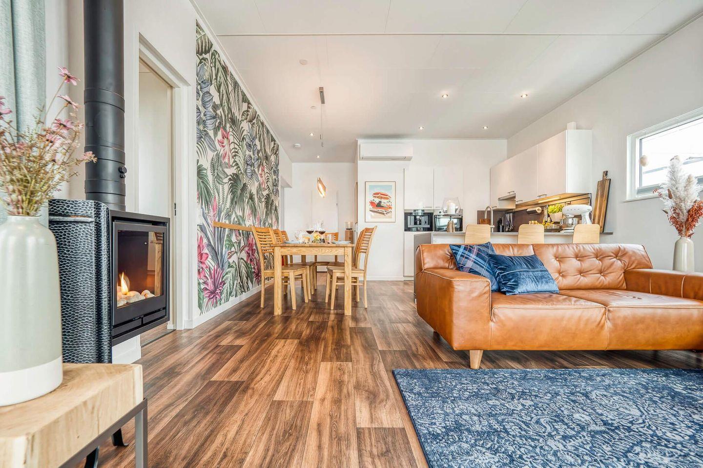 Der Wohnbereich ist auf Komfort ausgelegt: Eine Sofaecke, ein Essbereich mit Esstisch sowie TV und Radio schaffen eine gemütliche Atmosphäre. Für angenehme Temperaturen sorgen Heizung, Fußbodenheizung und Klimaanlage; zusätzlich steht Ihnen ein Kamin-/Ofen zur Verfügung. WLAN ist vorhanden, sodass Sie bei Bedarf auch vor Ort verlässlich online bleiben können.