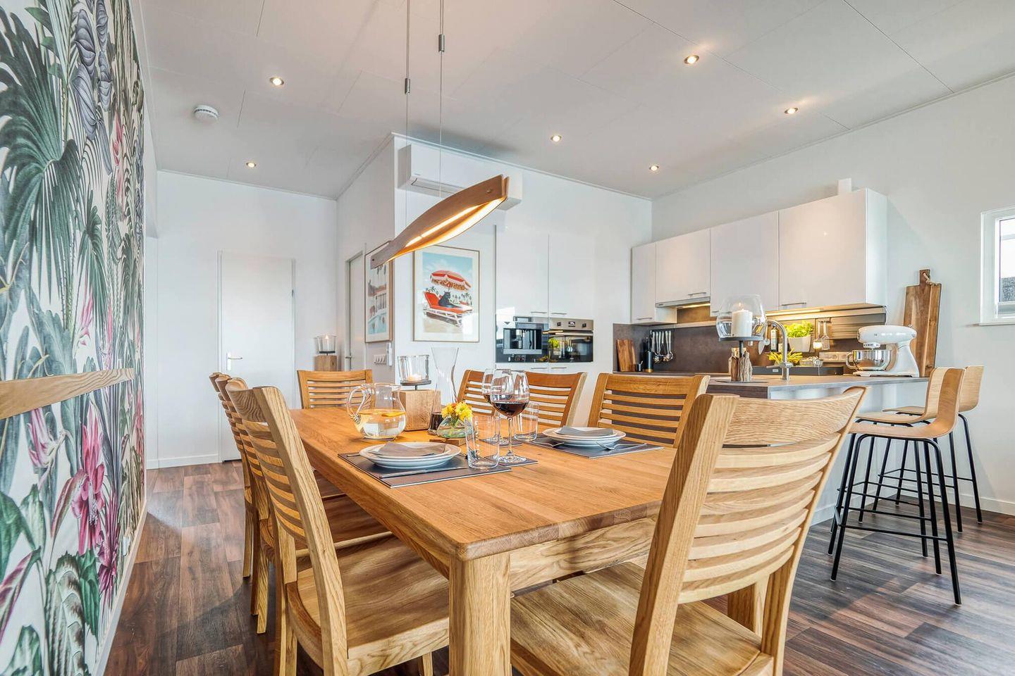 Die offene Küche ist zum Wohnzimmer hin gestaltet und bietet eine umfangreiche Ausstattung für Ihre Selbstversorgung: Ceran-Herd, Spülmaschine, Kühlschrank mit Gefrierfach, Kaffeemaschine, Wasserkocher, Toaster sowie Küchenutensilien, Geschirr und Besteck. Auch Geschirrhandtücher und eine Erstausstattung sind vorhanden. Für entspannte Mahlzeiten im Freien steht Ihnen auf der (überdachten) Terrasse Gartenmöbel zur Verfügung; außerdem können Sie einen Elektrogrill nutzen.
