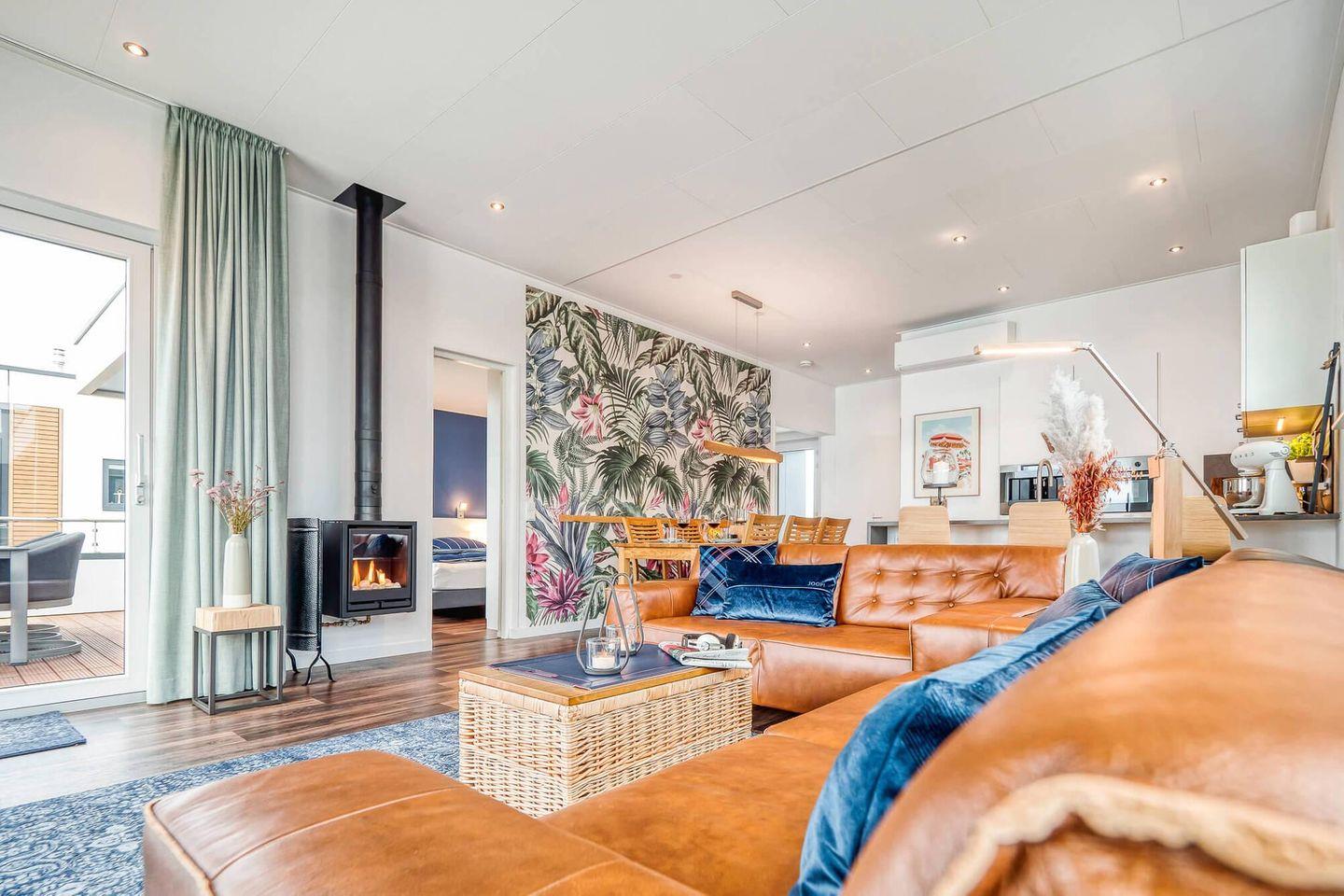 Das Floatinghouse Große Freiheit bietet 85 m² mit Seeblick, Kamin, Terrasse und modernem Komfort direkt am Wasser in Ribnitz-Damgarten.