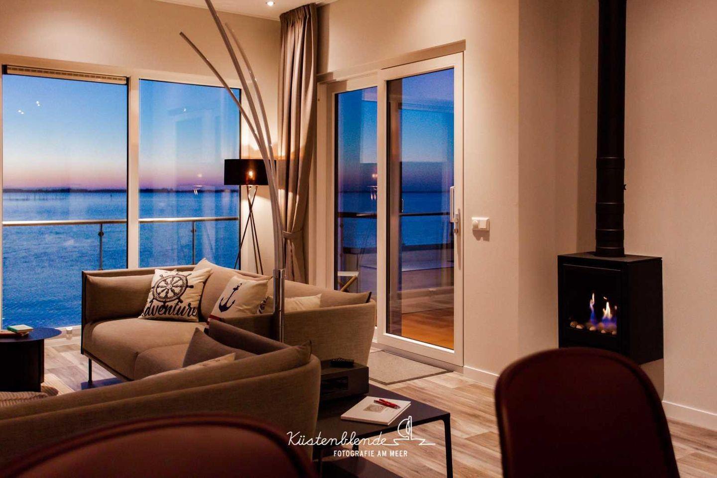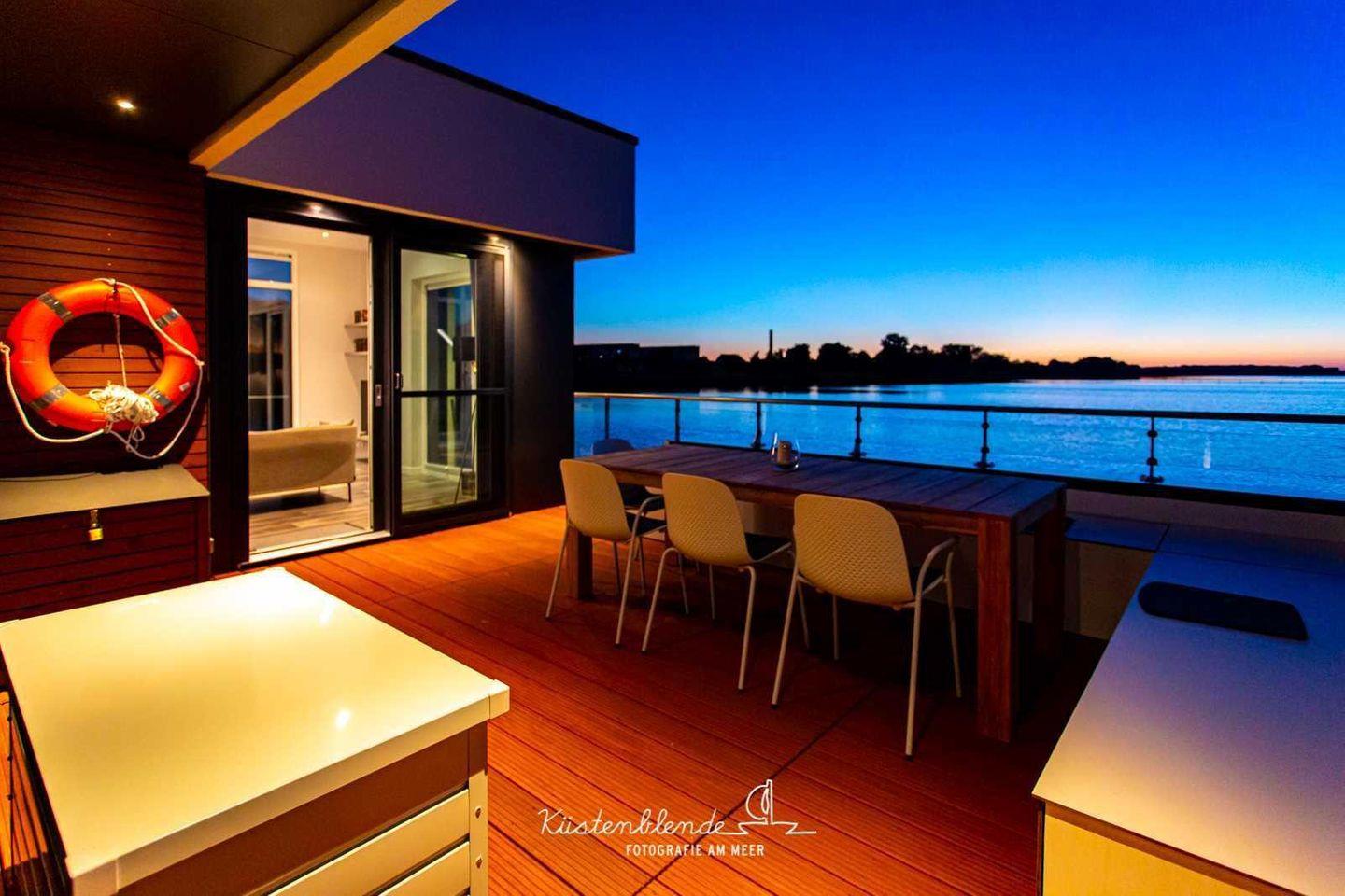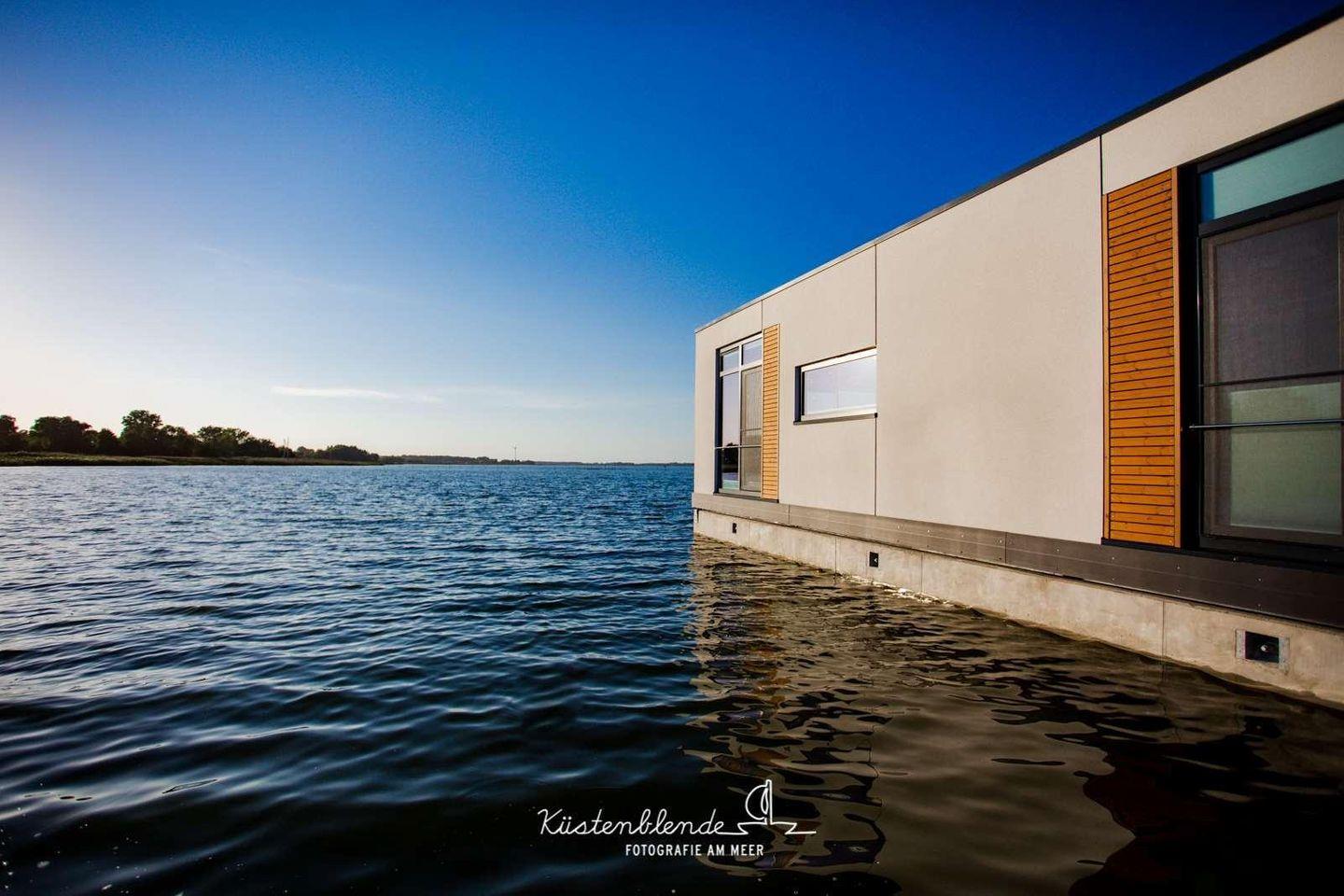 Floatinghouse Boddenperle: Ihr Ferienhaus am See mit Seeblick & Kamin