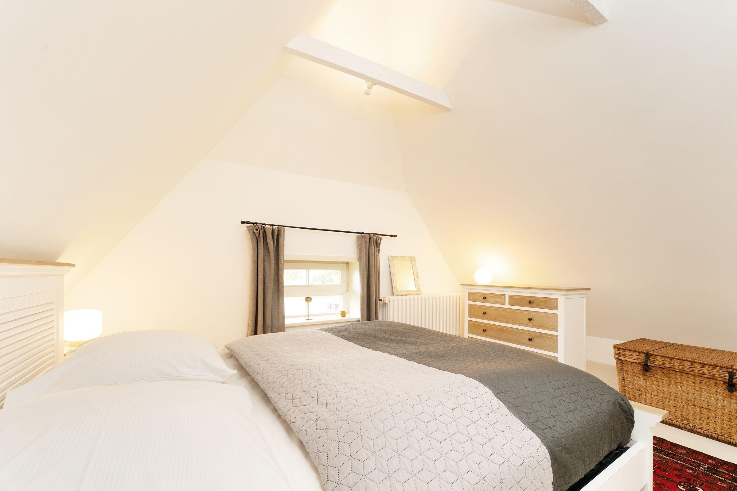 Schlafzimmer 1 (2.OG): 1 Doppelbett (160x200 cm), Kleiderschrank, Verdunkelung: Vorhänge, Platz für Babybett vorhanden