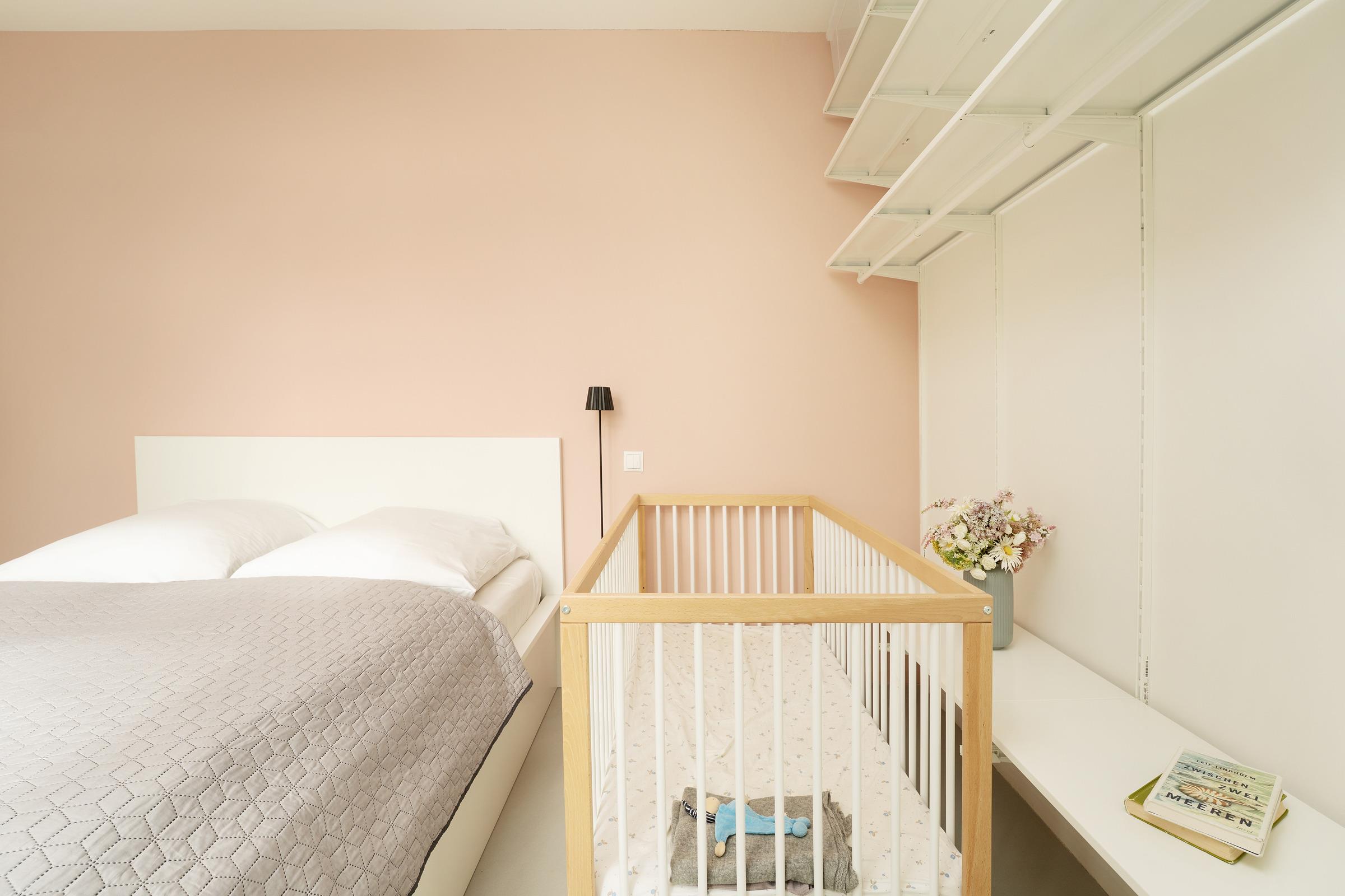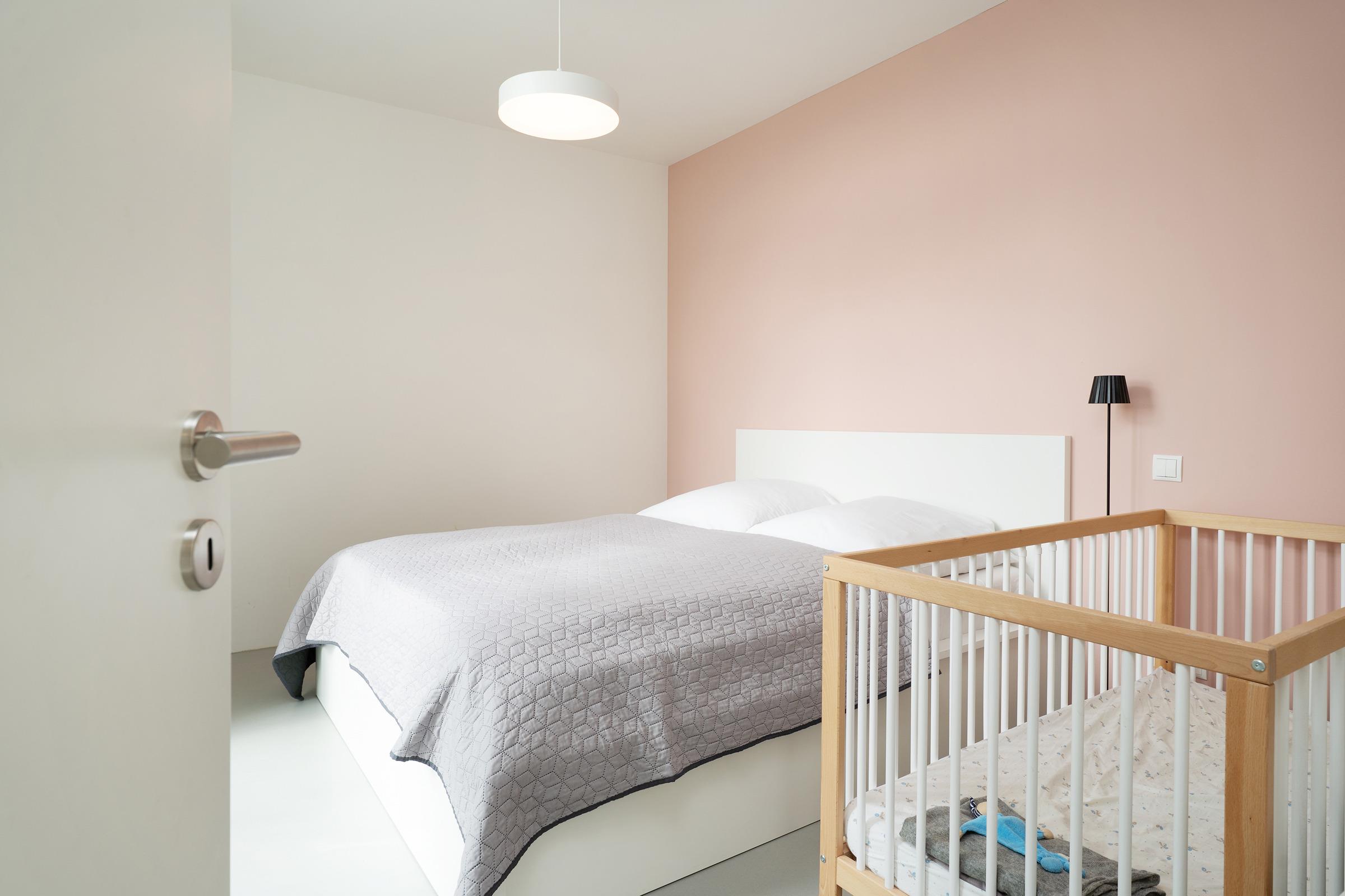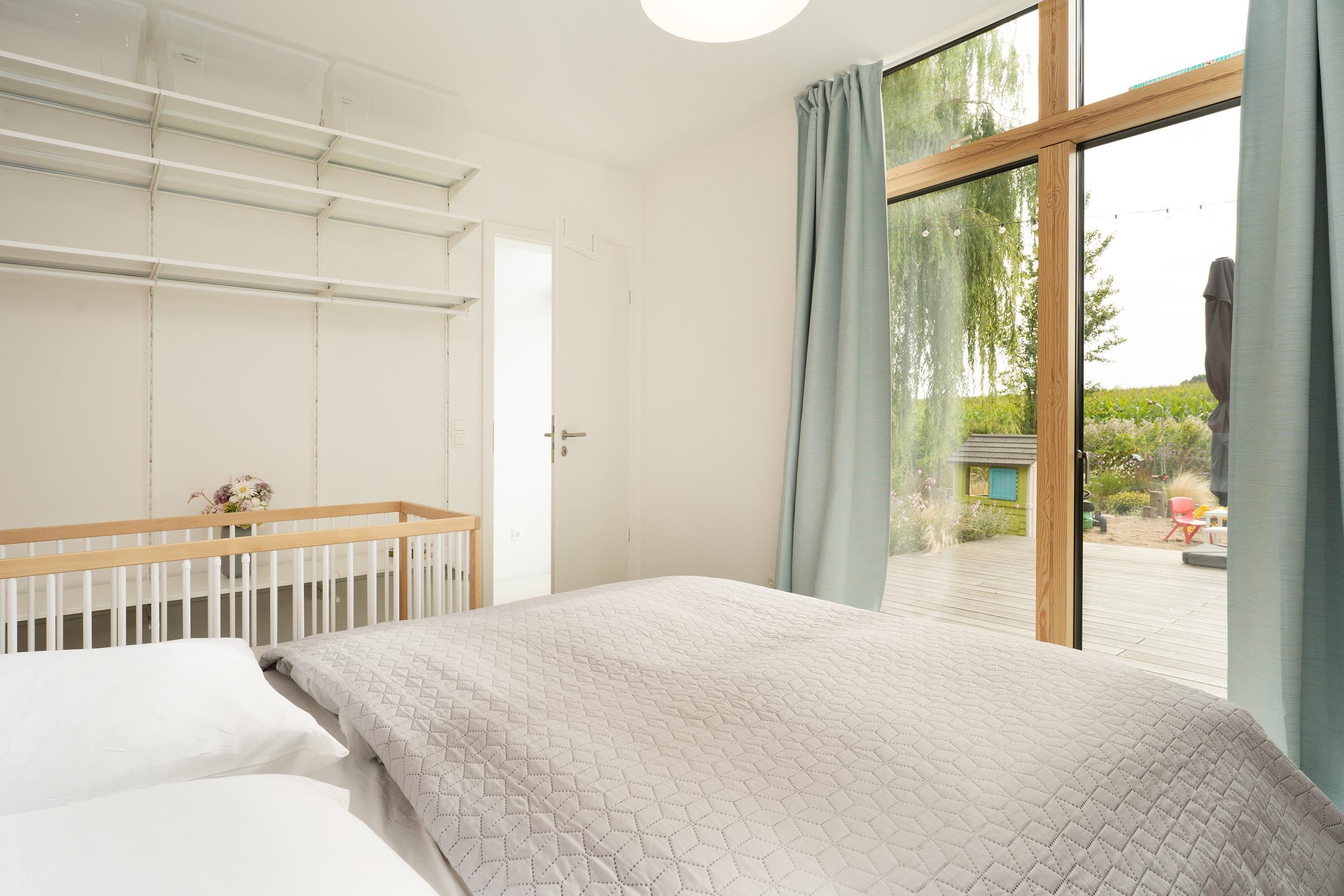 Schlafzimmer 1 (EG): 1 Doppelbett (160x200 cm), 1 Babybett aus Holz, Verdunkelung: Vorhänge