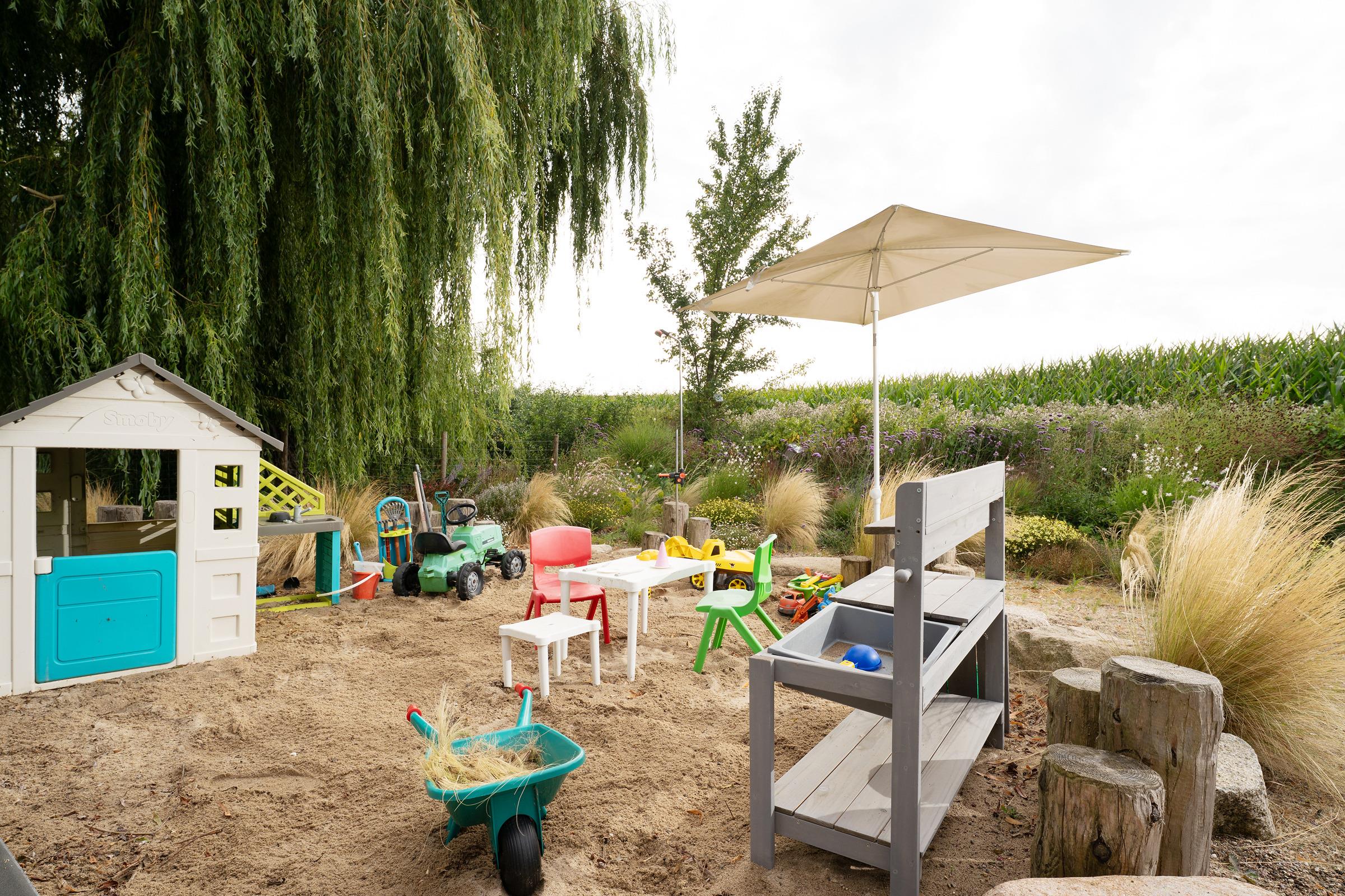 Für die kleinen Gäste stehen sowohl ein hochwertiges Gitterbett aus Holz, ein Kinderreisebett als auch ein Hochstuhl bereit.