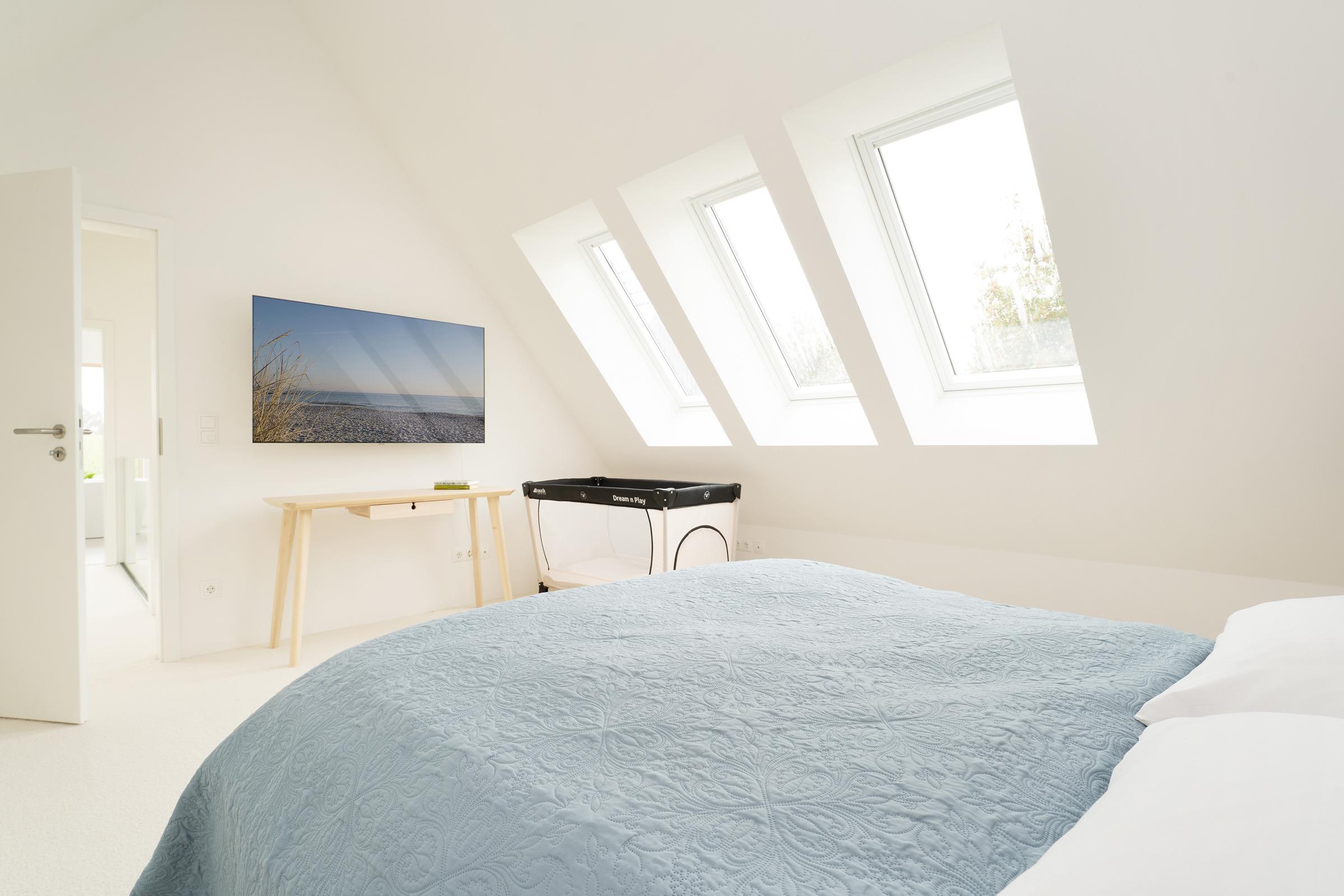 Schlafzimmer 3 (1. OG): 1 Doppelbett (160x200 cm), Verdunkelung: Velux-Rollo