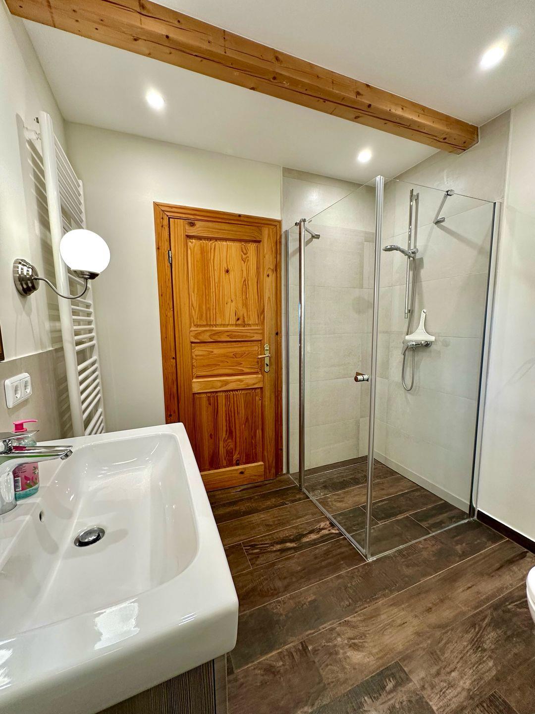 Entspannung pur erleben Sie in einem der zwei Badezimmer – eines mit bodengleicher Dusche, das andere mit Badewanne. Ein Haartrockner sind selbstverständlich ebenfalls vorhanden. Kinder sind in unserem Haus herzlich willkommen. Ein Kinderhochstuhl ist ebenfalls vorhanden. Im Erdgeschoss gibt ein Schlafzimmer mit einem Doppelbett sowie ein weiteres Schlafzimmer mit einem Einzelbett. Im Obergeschoss gibt es 2 Schlafzimmer, eines mit Doppelbett, das andere mit einem Einzelbett sowie der Möglichkeit, eine untere Schublade mit Matratze auszuziehen. Ein Hund ist erlaubt, sodass die gesamte Familie mit dem vierbeinigen Freund anreisen kann.