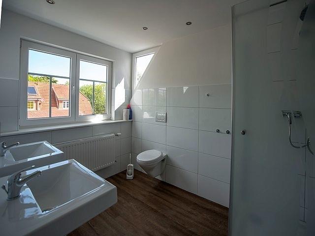 In der kleinen Villa finden Sie eine entzückende, komplett eingerichtete, helle Küche mit einem Tresen und 2 Barhockern für einen Kaffee oder Snack zwischendurch. Die Stube ist aufgeteilt in einen Essbereich mit Ofen und einer Durchreiche zur Küche sowie einen Lesebereich mit 2 Sesseln. Die gesamte Stube beeindruckt durch einen wunderschönen Holzfußboden. Abgegrenzt durch eine Doppeltür können Sie auf der Couch entspannt fernsehen oder Musik hören. Dort befindet sich auch die Ausziehcouch. In der 1. Etage liegen die beiden Schlafräume. Im ersten Schlafzimmer warten ein Wasserbett (2,20 m x 2,00 m), der Tresor, ein Flachbildfernseher, DVD etc. und ein wunderbarer Ausblick auf Sie. Im zweiten Schlafzimmer befinden sich ein Französisches Bett (1,40 m x 2,00 m), ein Einzelbett (1,00 x 2,00 m) und ein Schreibtisch. Es bietet sich hier ebenfalls ein wunderbarer Ausblick. Das Duschbad ist mit zwei Waschbecken sowie mit Föhn, großem Spiegel uvm. ausgestattet. In der 1. Etage ist ein Dekorboden ausgelegt.